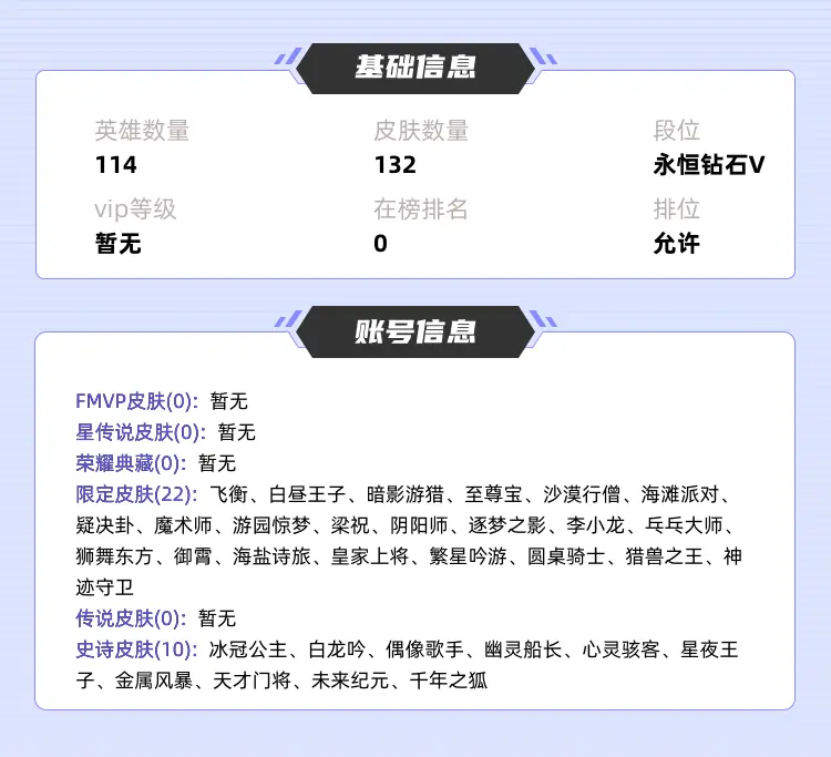 本游戏账号,基础段位:至尊星耀,英雄多,皮肤多。 私人所属英雄皮肤有:孙悟空 至尊宝||嬴政 白昼王子||韩信 飞衡||马可波罗 暗影游猎||达摩 沙漠行僧韩信 白龙吟||雅典娜 冰冠公主,等等