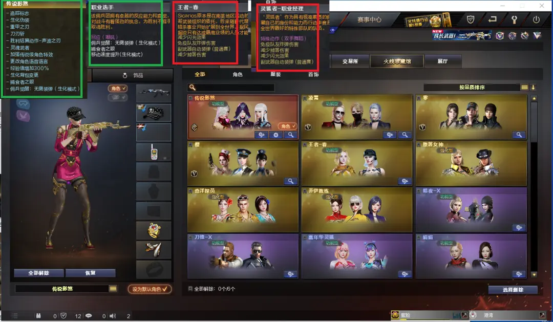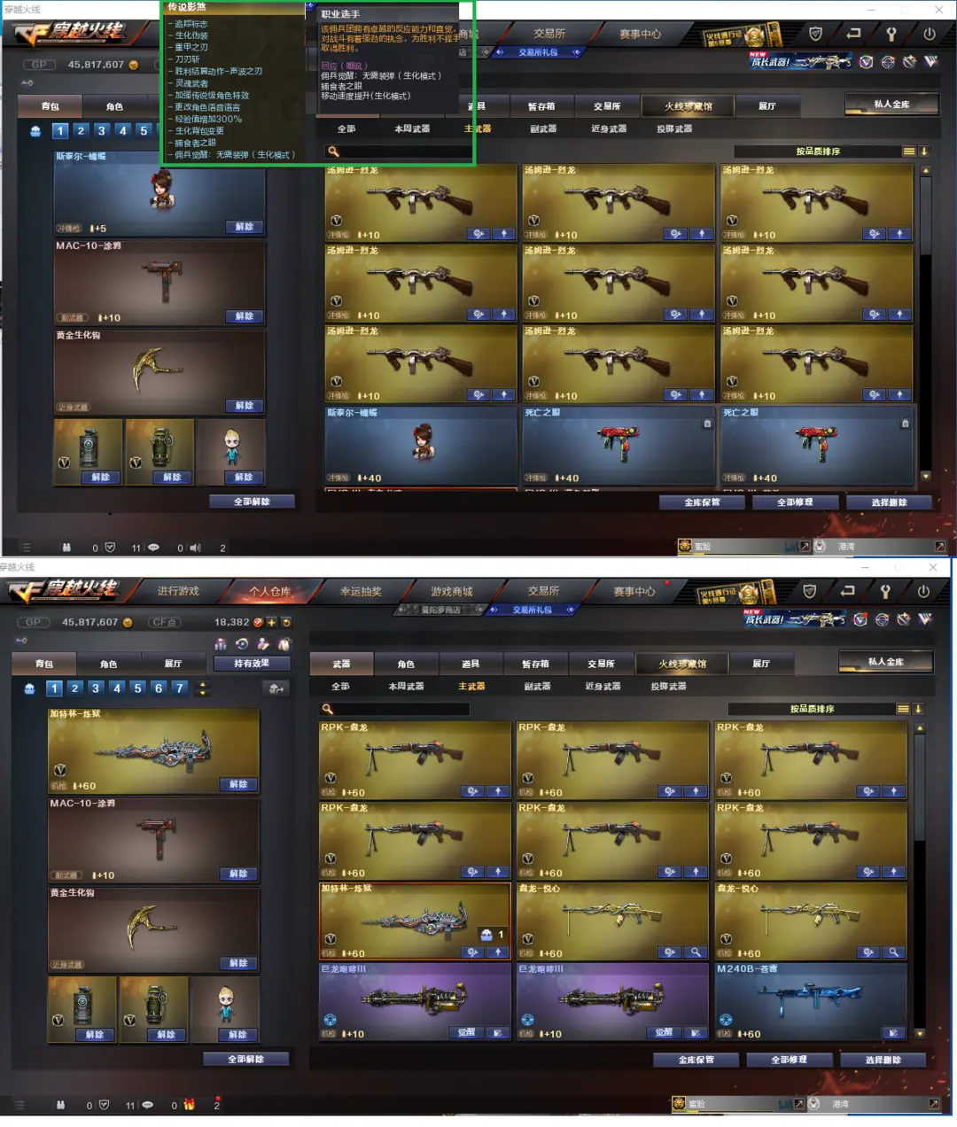 排位:可以、、、、、、、、生化四品号(可以变更背包、查看僵尸血量)无需换弹、6盘、6烈、炼狱、斯太尔蝴蝶、死亡之眼、MAC手枪、手斧镜、生化减速雷、超级对讲机、全部弹匣、、、、、、爆破四防:幻神音效(周瑜皮肤)、王者幻神(已觉醒)USP雷暴、2个冠军之特、COP雷霆、星神、白虎、蔷薇、、、幻神音效、毁灭音效、雷神音效、火麒麟音效、黑骑士音效、、、1套电竞装甲、1套幻灵、5套雷暴、7套雷霆、7套夜魔、、、生化(传说影煞、职业选手)、爆破四防(王者春、职业经理)、爆破三防(凌霄)