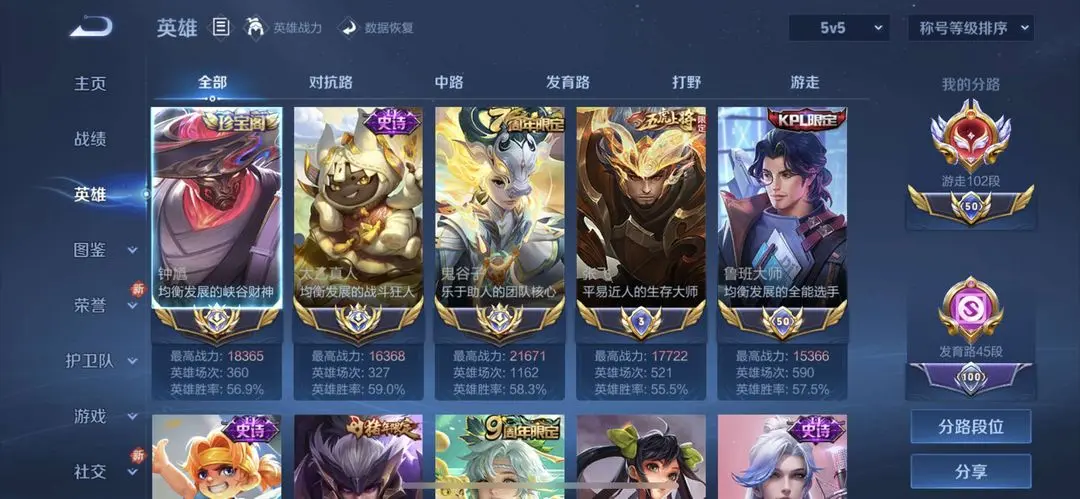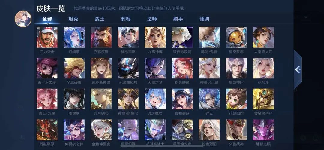 【V10贵族 653皮肤】102段国服百强游走历史2万1鬼谷❤️超多质量皮肤按键星元性价比拉满