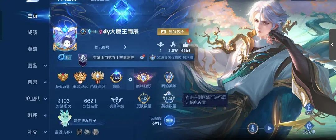 巅峰已开⭐历史1.7w数字标1诸葛亮⭐主页巅峰百强打野⭐五排开黑首选⭐带妹必备⭐诸葛绝活号⭐