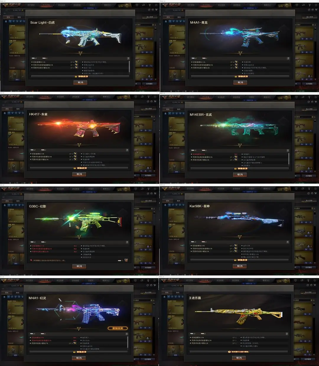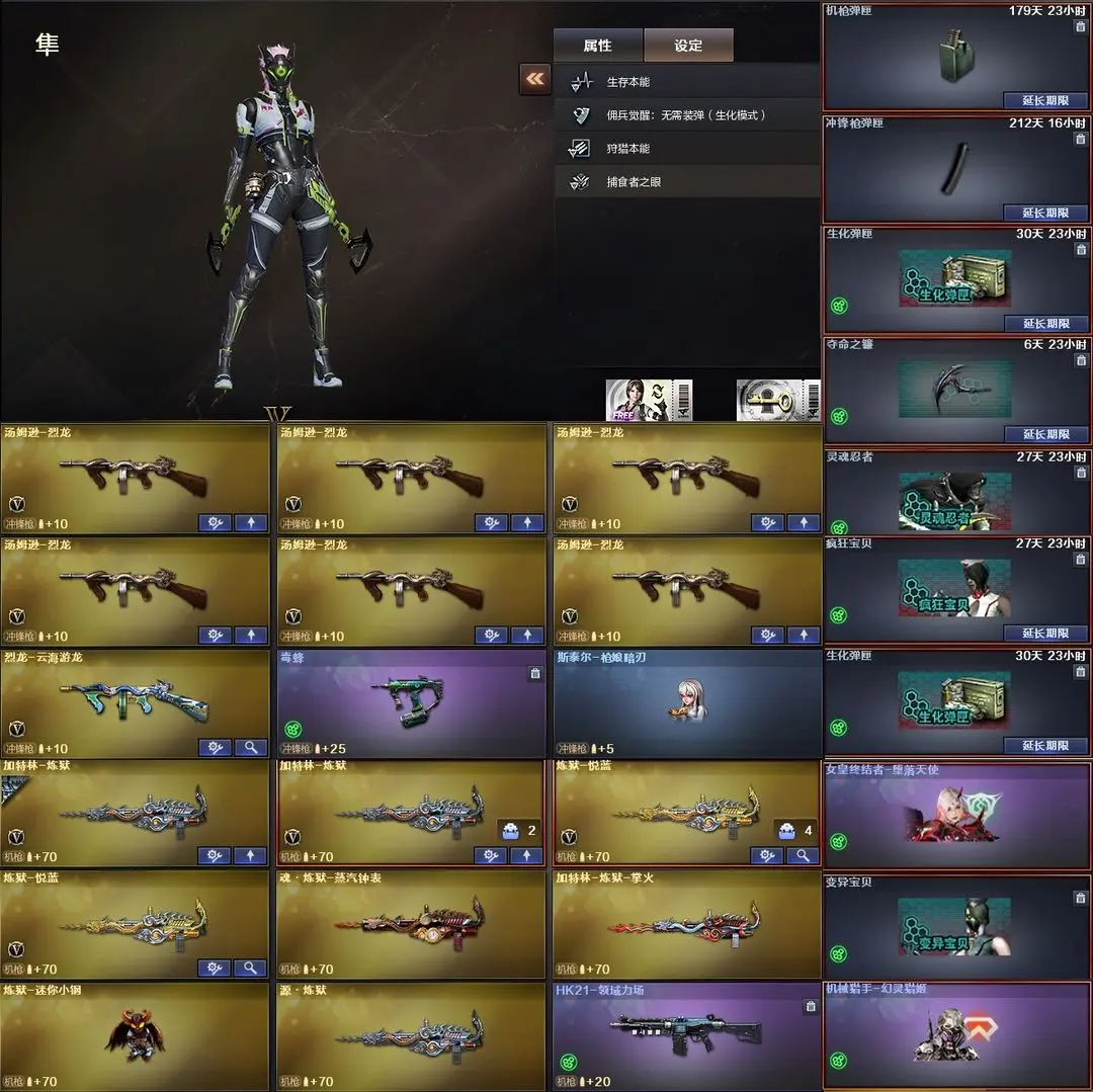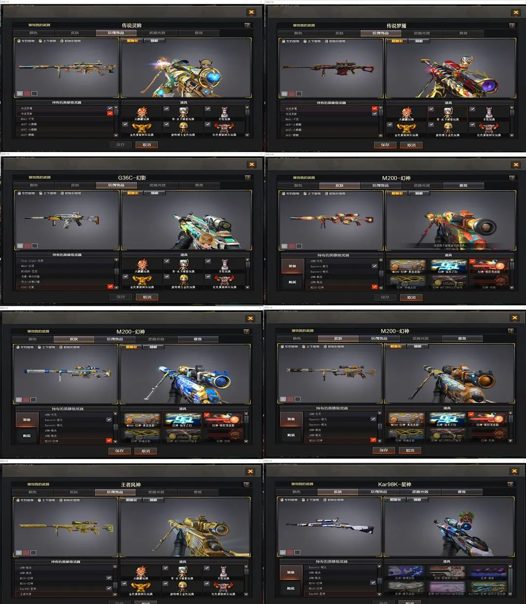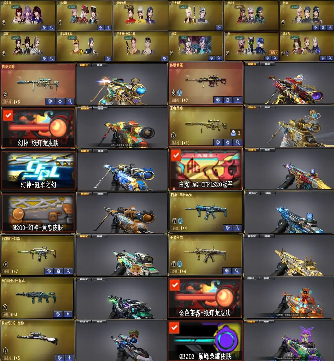 【装备道具】:【传说灵眸】【幻神-冠军之幻+纸灯龙+黄忠 幻神动感闪耀音效卡 王者风神 冠军之刃】【98k星神】【传说灵眸 传说梦魇】【g36c幻影】【scar白虎 白虎-ag20冠军 王者白虎 白虎-电玩蓝兔 火麒麟-白虎】【qbz金色蔷薇 qbz巅峰荣耀 金色蔷薇-纸灯龙】【6烈龙 斯泰尔-呛娘 毒蜂 隼四防 机械猎手-幻灵猎姬 女皇终结者-堕落天使】【hk417-朱雀 朱雀音效卡】【炼狱音效卡】【 极光音效卡】【6黑骑士 黑骑士音效卡 冠军之势 冠军典藏】【雷神动感闪耀音效卡 雷神-lgd18冠军+赤焰魔龙】【冠军之怒】【擎天-冠军之击】【麒麟刺-荣耀世冠白鲨】【龙啸-纸灯龙】黑鲨 青龙 幻灵m4 m14ebr-玄武 王者之翼 王者之魄 王者之戮 天启-悦智 海王 王者白虎 白虎-电玩蓝兔 王者芳薇烈龙 aa12雷霆 cop-幻灵 【影豹四防 雨棠四防 岚兮儿四防 机械姬四防 关小雨 乔伊教练 王者潘多拉 王者樱热浪之夏 王者影豹 修道士 隼四防】【王者芳薇 毁灭-孙三炮
