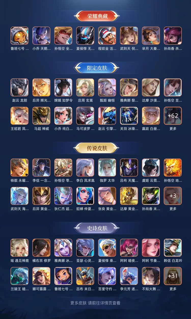 本游戏账号: V10用户,基础段位:至尊星耀II,英雄多,皮肤多。典藏皮肤8个,感受典藏皮肤带来的优质体验快感,FMVP皮肤4个,尽情享受FMVP皮肤带来的主角光环, 私人所属英雄皮肤有:孙尚香 杀手不太冷||鲁班七号 星空梦想||芈月 大秦宣太后||夏侯惇 无限飓风号||武则天 倪克斯神谕||程咬金 活力突击||孙悟空 全息碎影||小乔 天鹅之梦诸葛亮 武陵仙君||梦奇 胖达荣荣||孙尚香 末日机甲||吕布 天魔缭乱||宫本武藏 地狱之眼||李白 凤求凰||狄仁杰 超时空战士||达摩 黄金狮子座||武则天 海洋之心||貂蝉 仲夏夜之梦||张良 黄金白羊座||孙悟空 零号·赤焰||孙悟空 地狱火||后羿 黄金射手座||虞姬 启明星使||虞姬 云霓雀翎||杨戬 永曜之星||李信 一念神魔||伽罗 太华,等等