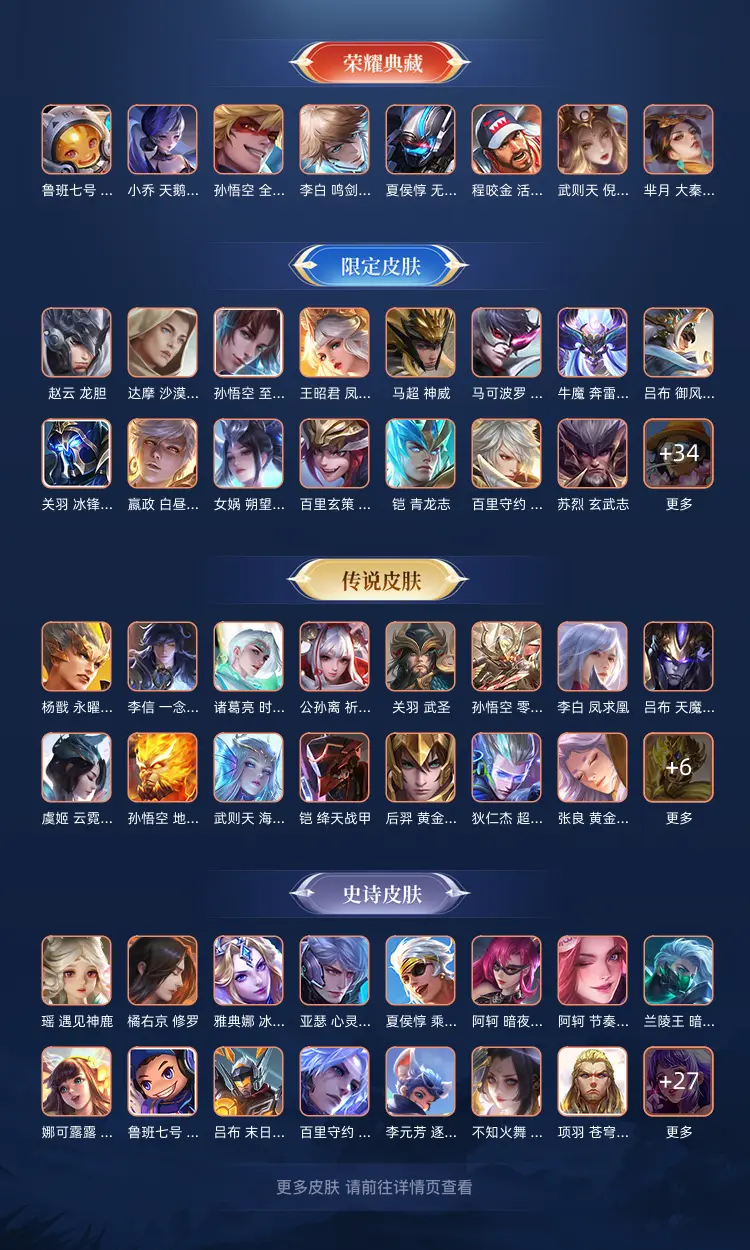 本游戏账号: V10用户,基础段位:至尊星耀V,英雄多,皮肤多。典藏皮肤8个,感受典藏皮肤带来的优质体验快感,FMVP皮肤5个,尽情享受FMVP皮肤带来的主角光环, 私人所属英雄皮肤有:孙悟空 全息碎影||武则天 倪克斯神谕||夏侯惇 无限飓风号||李白 鸣剑·曳影||小乔 天鹅之梦||鲁班七号 星空梦想||芈月 大秦宣太后||程咬金 活力突击吕布 天魔缭乱||孙悟空 零号·赤焰||孙悟空 地狱火||诸葛亮 时雨天司||诸葛亮 武陵仙君||武则天 海洋之心||杨戬 永曜之星||宫本武藏 地狱之眼||李白 凤求凰||孙尚香 末日机甲||艾琳 觅芳踪||关羽 武圣||李信 一念神魔||铠 绛天战甲||狄仁杰 超时空战士||公孙离 祈雪灵祝||后羿 黄金射手座||兰陵王 默契交锋||虞姬 启明星使||虞姬 云霓雀翎||达摩 黄金狮子座||张良 黄金白羊座||梦奇 胖达荣荣||桑启 鸣野蒿,等等