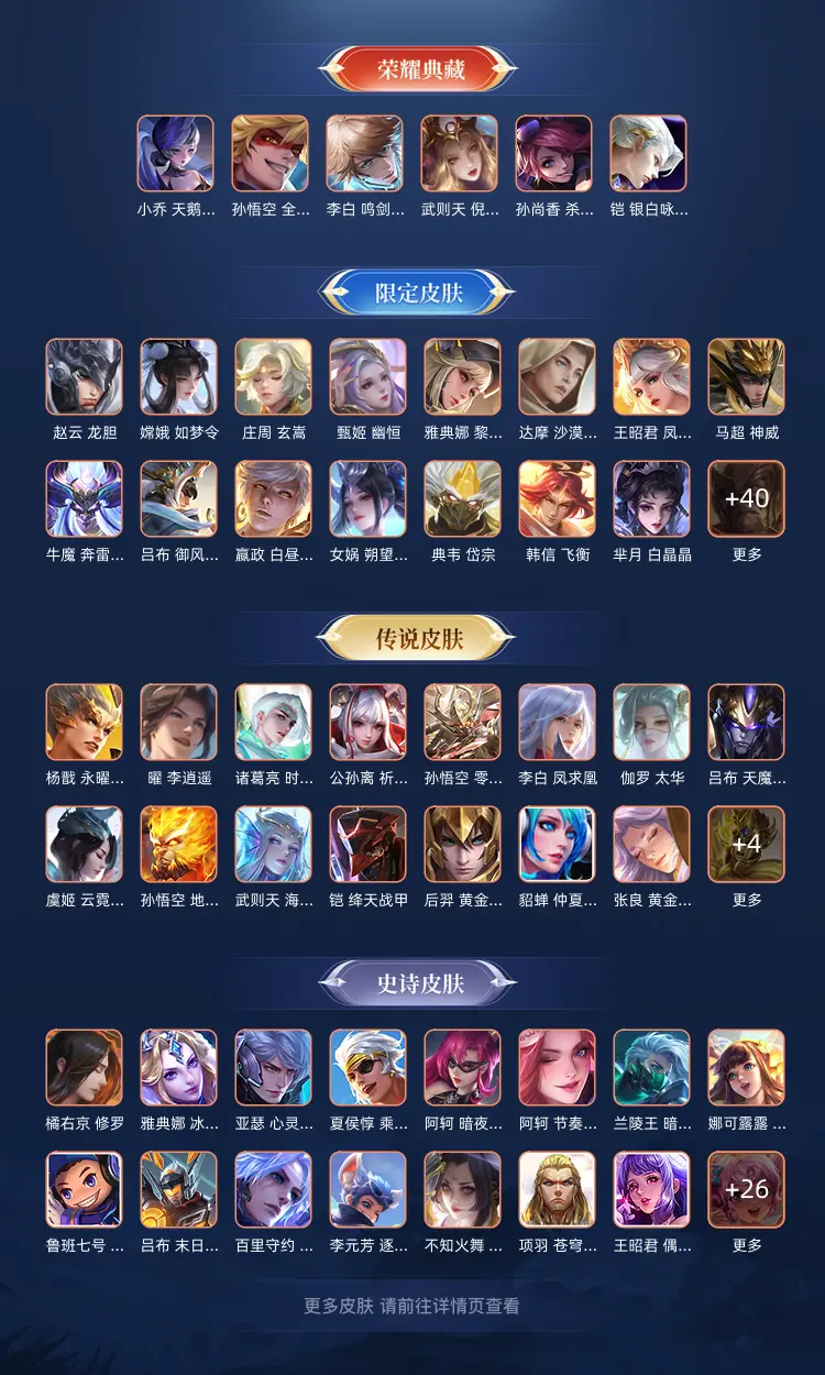 本游戏账号: V10用户,基础段位:至尊星耀III,英雄多,皮肤多。典藏皮肤5个,感受典藏皮肤带来的优质体验快感,FMVP皮肤2个,尽情享受FMVP皮肤带来的主角光环, 私人所属英雄皮肤有:孙尚香 杀手不太冷||李白 鸣剑·曳影||武则天 倪克斯神谕||孙悟空 全息碎影||小乔 天鹅之梦铠 绛天战甲||孙尚香 末日机甲||达摩 黄金狮子座||武则天 海洋之心||貂蝉 仲夏夜之梦||张良 黄金白羊座||孙悟空 地狱火||后羿 黄金射手座,等等