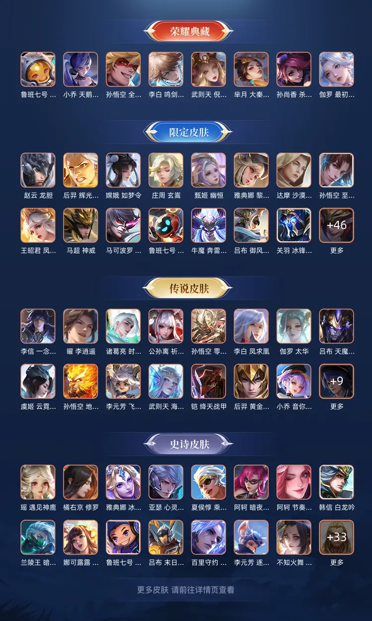 本游戏账号: V10用户,基础段位:至尊星耀IV,英雄多,皮肤多。典藏皮肤7个,感受典藏皮肤带来的优质体验快感,FMVP皮肤6个,尽情享受FMVP皮肤带来的主角光环, 私人所属英雄皮肤有:孙尚香 杀手不太冷||鲁班七号 星空梦想||芈月 大秦宣太后||李白 鸣剑·曳影||武则天 倪克斯神谕||孙悟空 全息碎影||小乔 天鹅之梦铠 绛天战甲||孙尚香 末日机甲||周瑜 音你心动||狄仁杰 超时空战士||达摩 黄金狮子座||武则天 海洋之心||貂蝉 仲夏夜之梦||王昭君 乞巧织情||张良 黄金白羊座||孙悟空 地狱火||后羿 黄金射手座||李元芳 飞鸢探春||小乔 音你心动,等等
