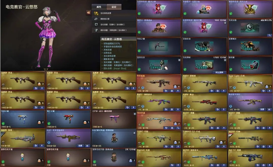 【装备道具】:传说圣谕❤法玛斯天戎❤G36C-幻影❤98K-星神❤scar-白虎❤QBZ-金色蔷薇❤传说艾莉莎❤传说暗裔❤星耀幻神❤幻神竞技套云悠悠夜魔套❤2把柯尔特-竞技荣光❤COP雷霆❤COP堕天神❤破空枪刃夜魔❤柯尔特电竞装甲❤荣耀世冠柯尔特❤COP雷霆王者❤M4雷霆王者❤裁决❤COP旗袍❤王者炫❤多手枪❤6烈龙炼狱满配生化★佣兵觉醒捕食者之眼★