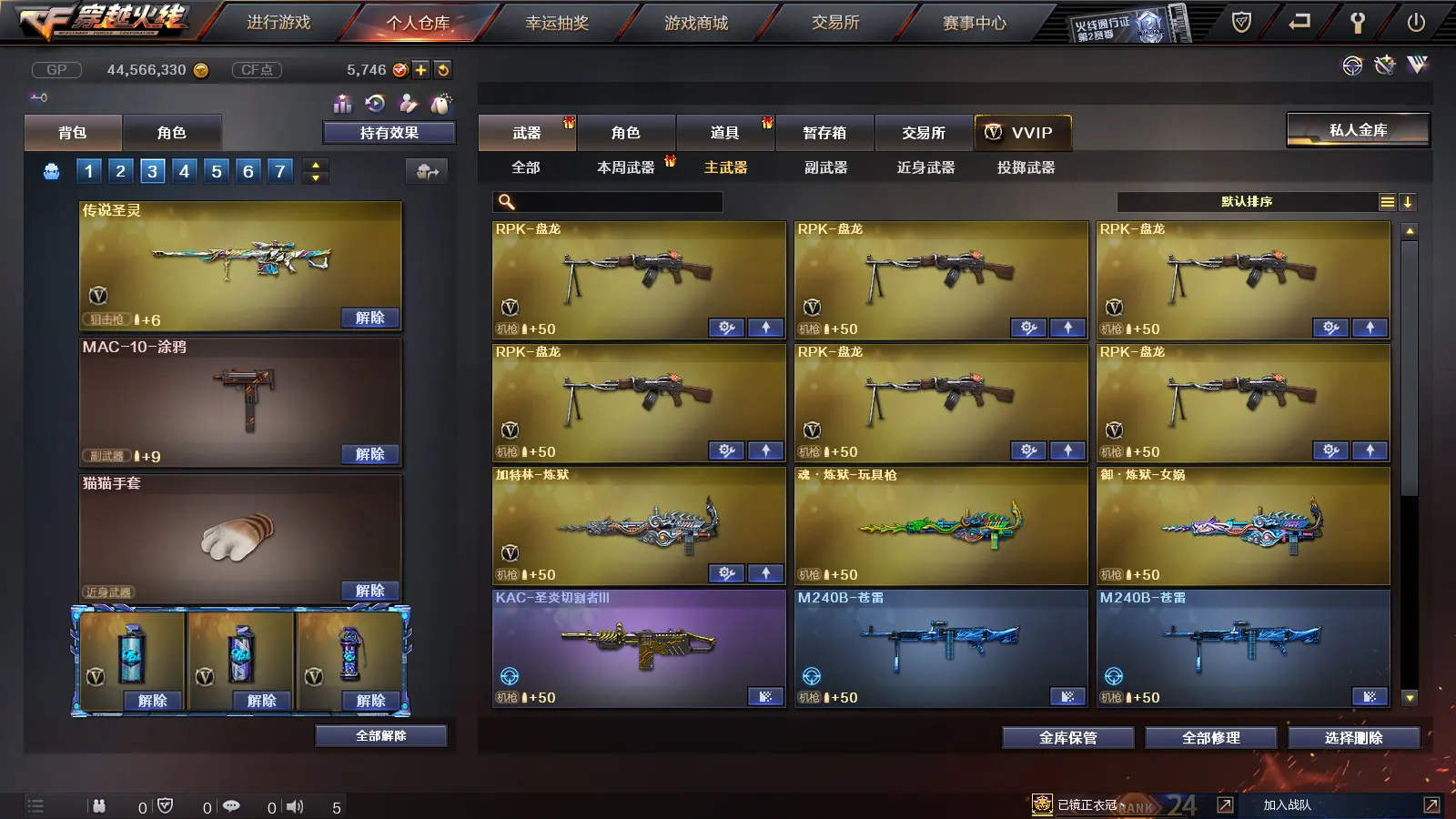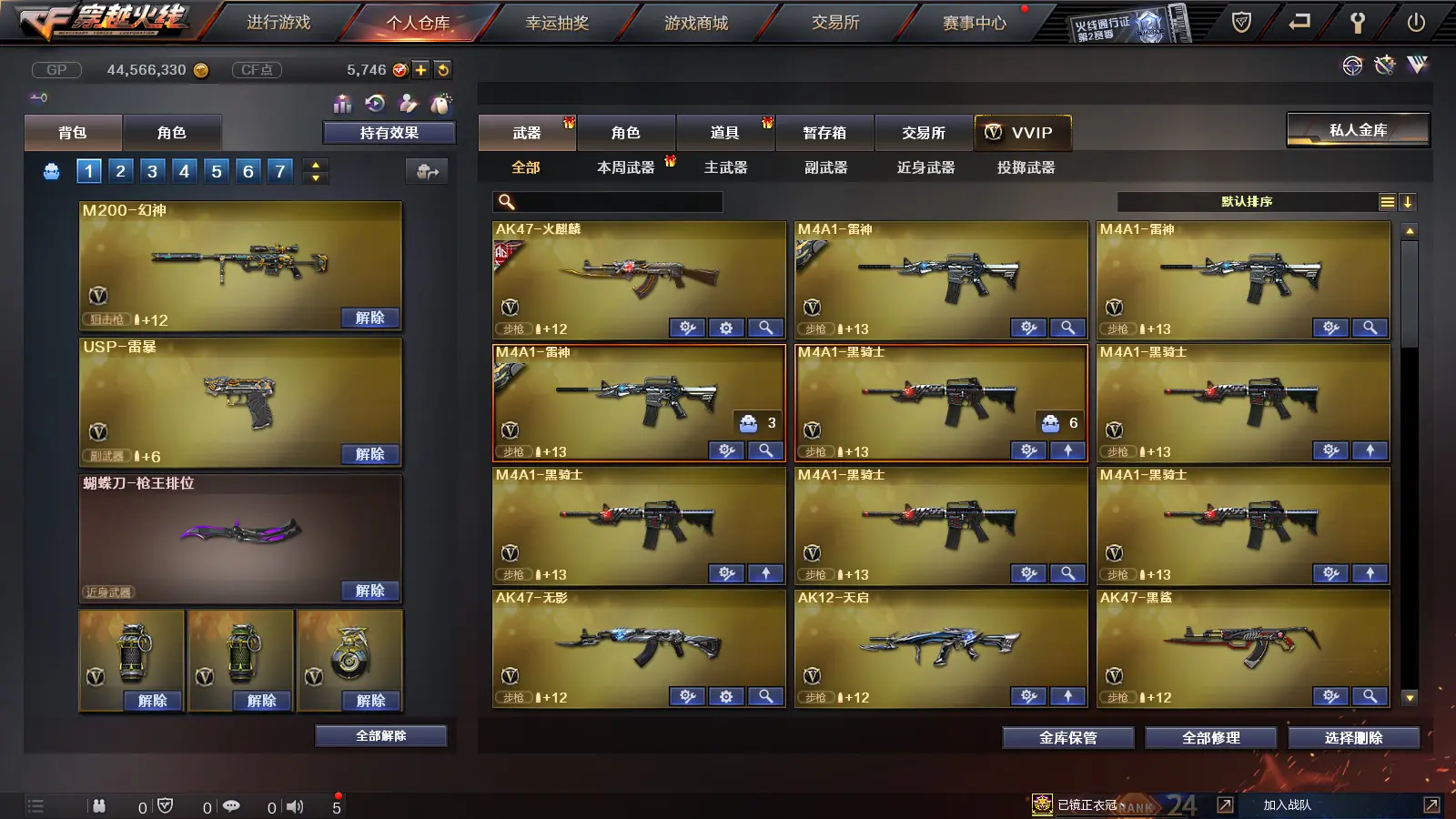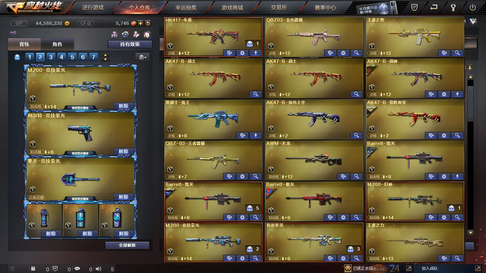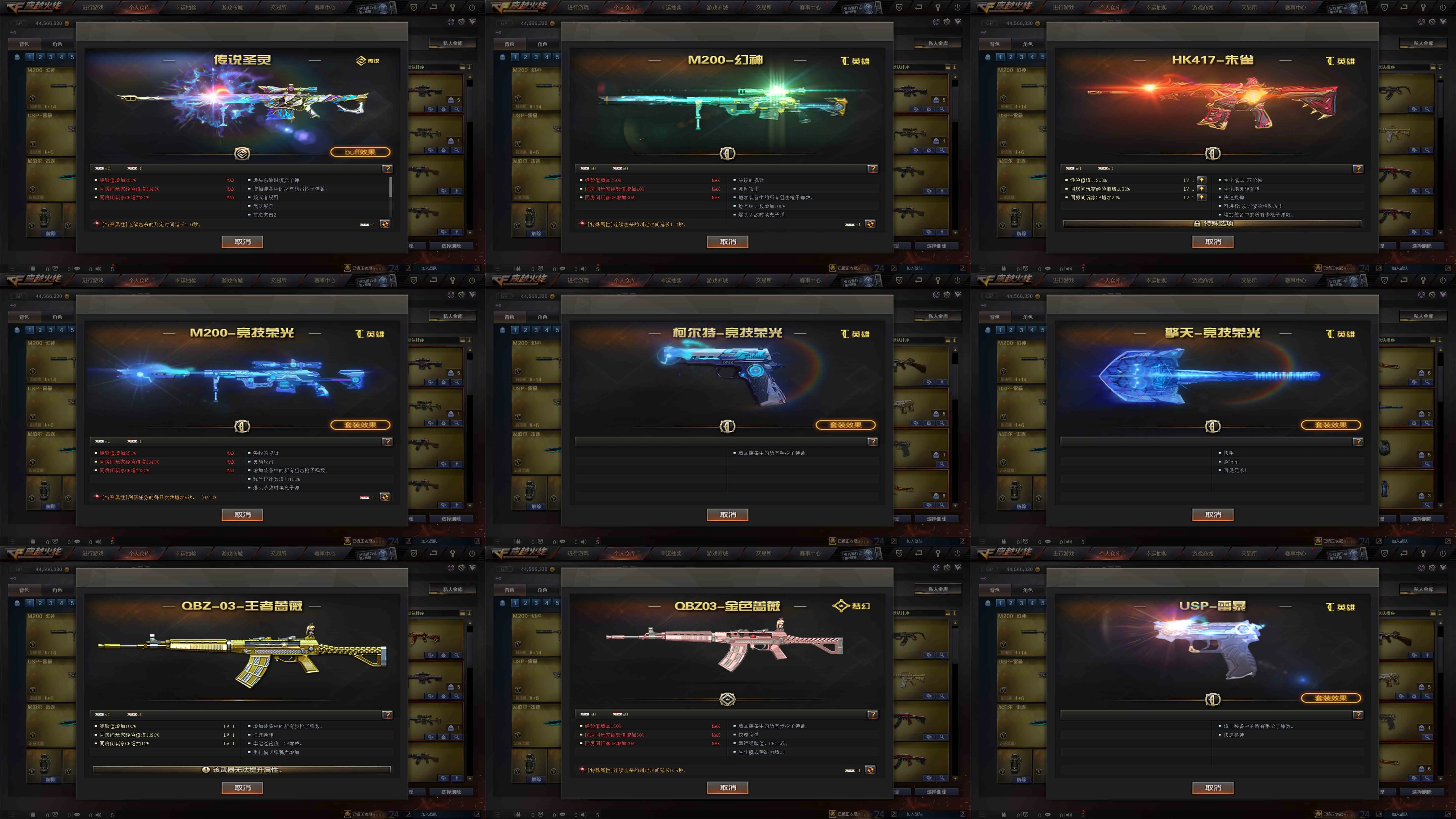 【装备道具】:M200幻神竞技荣光★柯尔特竞技荣光★擎天-竞技荣光★电竞教官-云悠悠★雷神-幻想★幻神竞技荣光云悠悠★传说圣灵★M200-幻神★HK417-朱雀★QBZ-王者蔷薇★qbz-金色蔷薇★USP雷暴★AG冠军毁灭皮肤★虎将雷神皮肤★AG战队火麒麟★雷神音效卡毁灭音效卡★王者之势王者之力王者之击★尼泊尔雷霆★斩神刀雷暴★斯泰尔蝴蝶枪★5黑骑士6烈龙6盘龙炼狱★水晶宝珠★猫猫手套★蝴蝶刀★迷你手枪★MAC-10-涂鸦★初恋灵狐★黑骑士海王★雷暴手雷★超新星悦享★死亡之眼★★爆破生化挑战全装★生化弹夹防化服变异宝贝死亡之眼★佣兵觉醒手斧镜减速雷★捕食者之眼死亡之眼超级对讲机不退包★超级背包无需换弹查看血量★