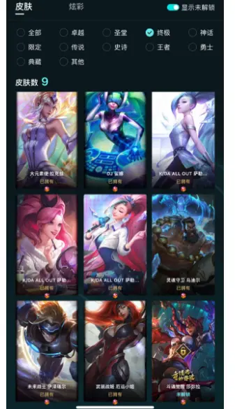 德玛西亚8000P〓129神话至臻卡特KDA灰烬骑士大元素使〓黑夜使者天煞劫北极星泳池多限定热门传说