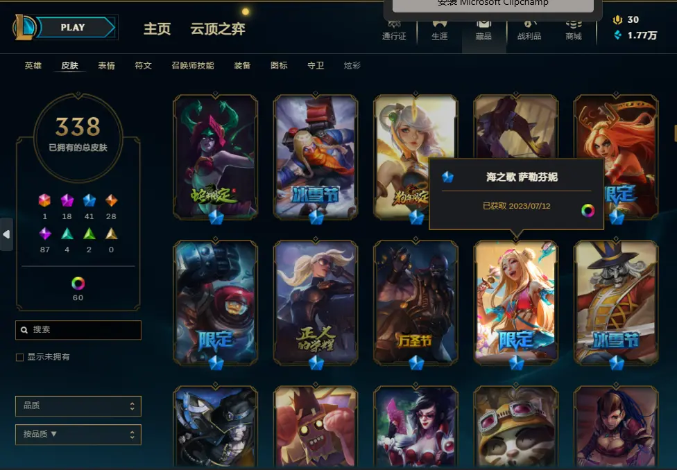 联盟三区推荐包天800P〓殿堂传奇卡莎31神话至臻杰斯周年格温女枪〓玉剑传说粉炫男刀黎明永恩