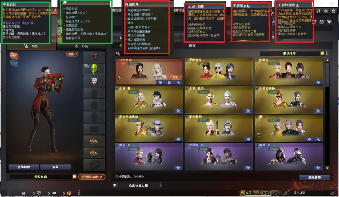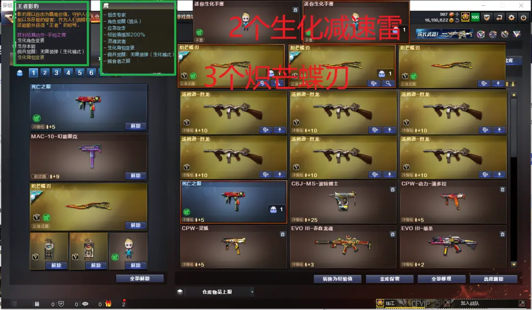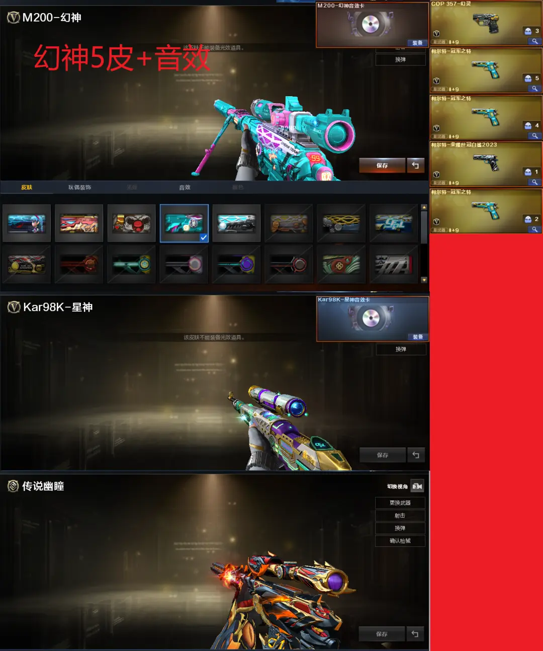 排位:可以、、、、、、、生化全装(生化模式换背包、查看生化僵尸血量):无需换弹、6烈、死亡之眼、MAC涂鸦、3把炽芒蝶刃、2个生化减速雷、超级对讲机、全部弹匣、、、、、爆破四防:幻神5皮+音效(传奇欧欧、N9、23白鲨、2022、白鲨皮肤)、传说幽瞳、98K星神音效、COP幻灵、3个冠军之特、23白鲨柯尔特、白虎、QBZ金色蔷薇、王者芳薇、、、幻神音效、星神音效、蔷薇音效、玄武音效、雷神音效、极光音效、黑骑士音效、、、1套电竞装甲、2套幻灵、3套神工天巧、、、生化四防(王者影豹、鹰)、爆破四防(传说女帝、王者魅影、王者潘多拉、王者沙漠玫瑰、王者春)