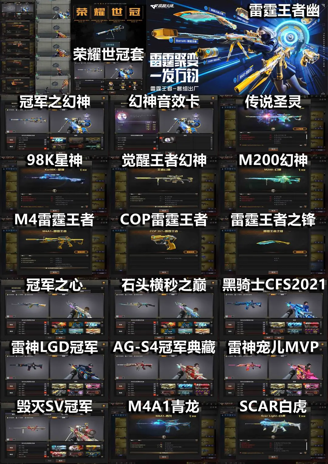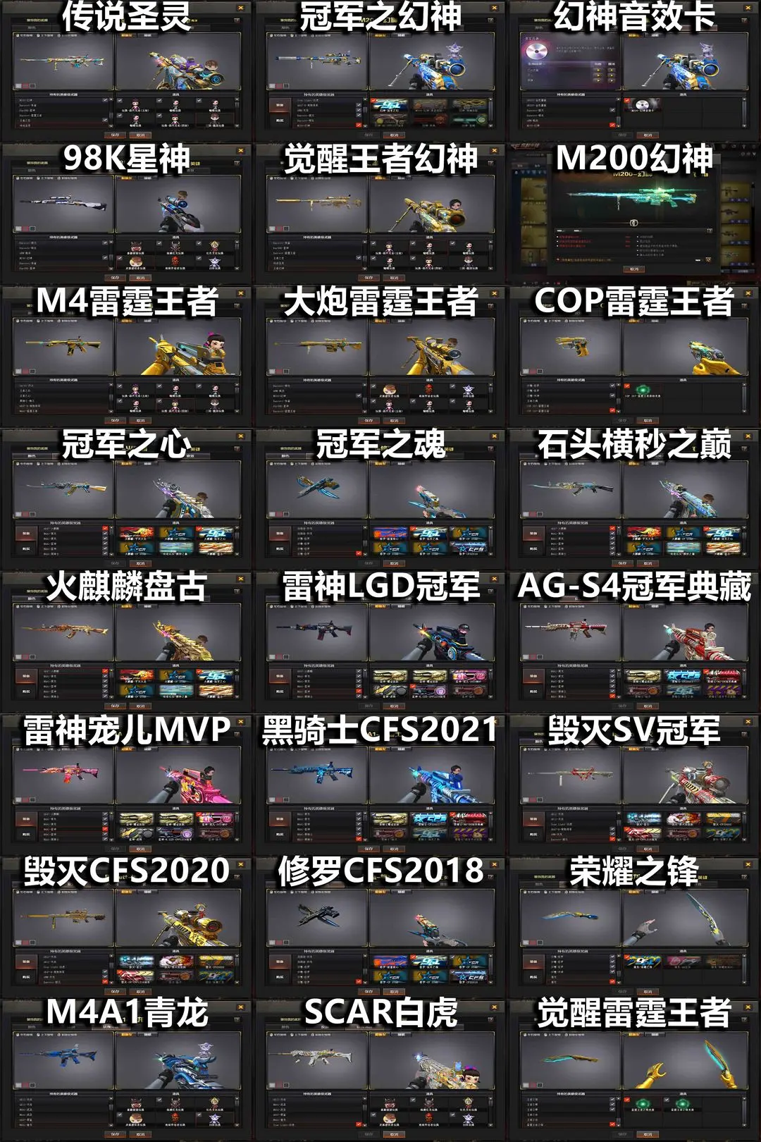 【装备道具】:冠军之幻★冠军之心★冠军之魂★荣耀世冠雷神★荣耀世冠火麒麟★荣耀世冠柯尔特★荣耀世冠龙啸★传说圣灵★98K星神★觉醒王者幻神★幻神音效卡★M200幻神★M4A1青龙★SCAR白虎★雷神宠儿MVP★传奇石头横秒之巅★雷神LGD冠军皮肤★黑骑士AG-S4冠军典藏★毁灭CFS2020★毁灭SV冠军皮肤★黑骑士CFS2021★火麒麟盘古★荣耀之锋★华夏之心★虎将雷神★耀金星空皮肤★修罗CFS2018★全套雷霆王者幽★M4雷霆王者★觉醒COP雷霆王者★大炮雷霆王者★雷霆王者之锋★王者玲珑王者春王者貂蝉王者魅影★职业经理★职业选手幽魅影★幻神雷神毁灭黑骑士黑龙5音效卡★王者之心之烈之怒之魂之锋之啸之击炫金毁灭炫金骑士★王者之魄手雷★4烈龙6盘龙6炼狱裁决雷霆★斯泰尔蝴蝶★火麒麟灵狐★巴雷特★COP旗袍★爆破挑战全装背包★生化弹夹防化服变异宝贝死亡之眼★佣兵觉醒手斧镜减速雷★捕食者之眼死亡之眼对讲机不退包★无需换弹查看血量★━━━━━━━━ 【租用须知】: 请勿乱投诉增加撤单率,恶意投诉撤单将永久拉黑。租号前请仔细查看武器账号描述详情,欢迎老铁常租,如果喜欢这个账号望请收藏!