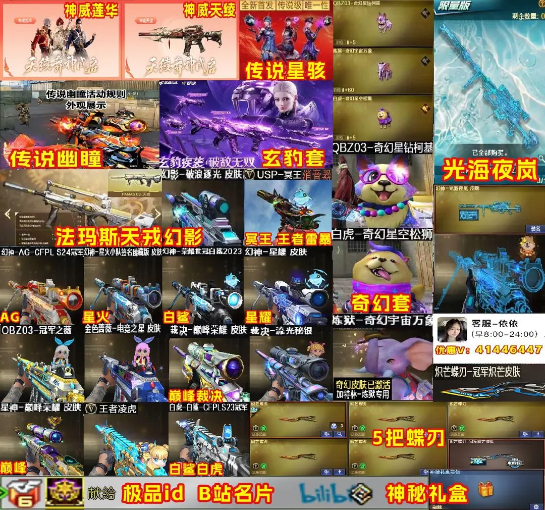 奇幻星空松狮★星钻柯基★炼狱泡泡象★传说星骇★传说圣谕★神秘礼盒背包金色昵称★光海夜岚幻神皮肤★/传说幽瞳/传说圣灵/传说幽冥/传说破晓★/幻神-星火小队签名臻藏版/幻神-AG-S24冠军/幻神-欧欧/幻神-荣耀世冠白鲨/幻神-荣耀世冠白鲨2023/M200-幻神-N9-2022MVP/幻神-冠军之幻/幻神-曹操/幻神-丹凤/幻神-星耀/星神-巅峰荣耀/98K-星神-AG-CFPLS21冠军/星神-枪娘默 皮肤/星神-璀璨★裁决-流光秘银/裁决-巅峰荣耀/裁决-羽掣★幻影-破浪逐光/金色蔷薇-Heartshot/白虎白鲨-S23冠军/Scar-白虎冠军之虎/Scar-白虎暗星/白虎-巅峰荣耀 /QBZ-CFS2024/QBZ-荣耀世冠白鲨/QBZ-传奇宠儿/QBZ-金色蔷薇-斗鱼/炽芒蝶刃-破浪逐光/炽芒蝶刃-荣耀世冠白鲨/炽芒蝶刃-冠军炽芒★裁决音效卡/星神音效卡/幻神音效卡/黑骑士音效卡/金色蔷薇音效卡/白虎音效卡/雷神音效卡/玄武音效卡USP-冥王/Anaconda-玄豹/无冕之王/FAMAS G2-天戎/G36C-幻影/QBZ191-银翼游侠/