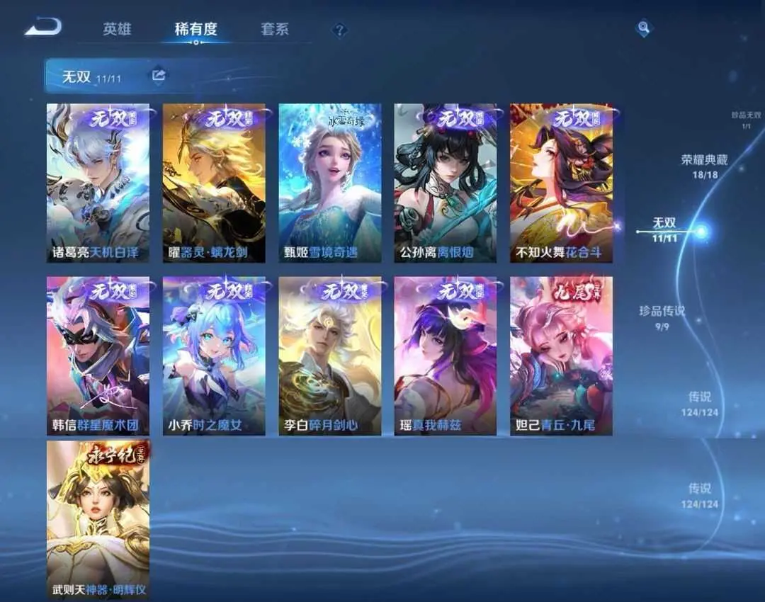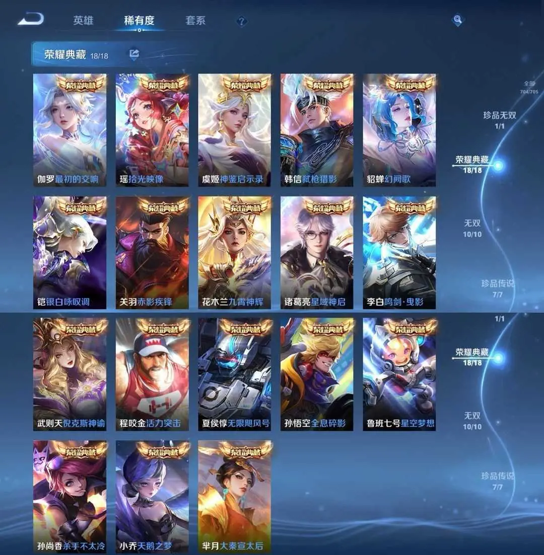 746皮|不禁言|只缺①皮肤《新皮全秒》〖10周年全❤神罪〗满典藏✨满按键✨满无双✨满珍品✨满传说