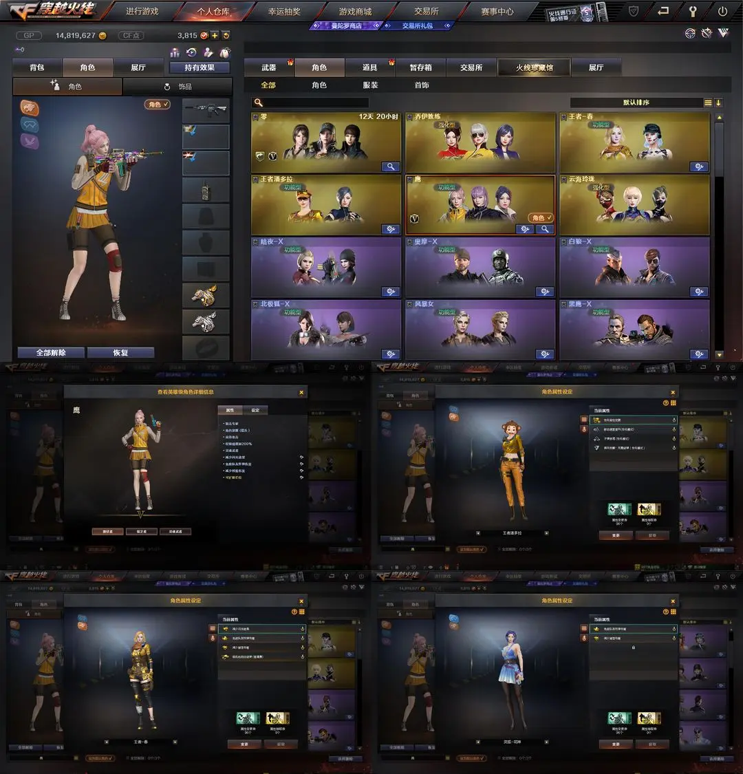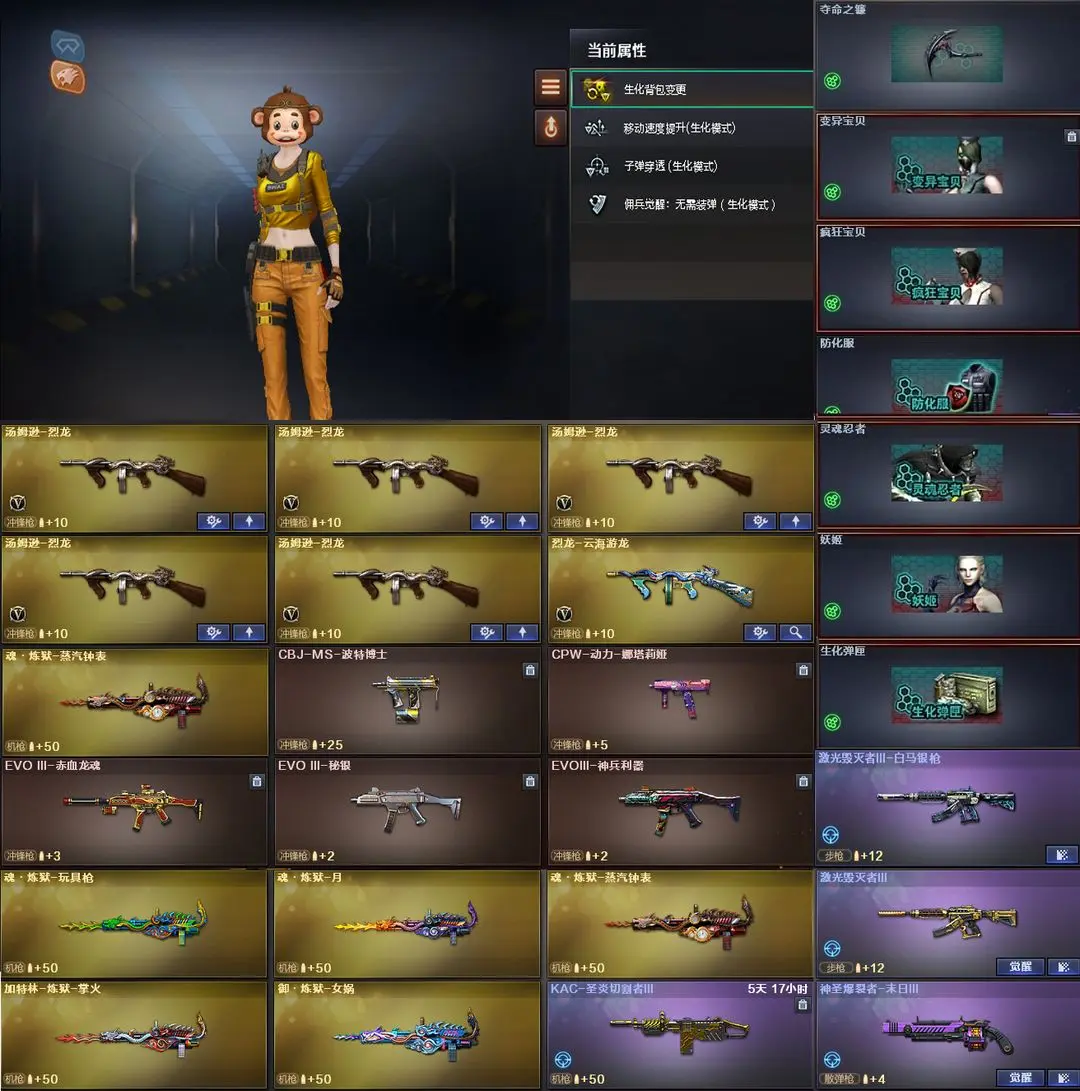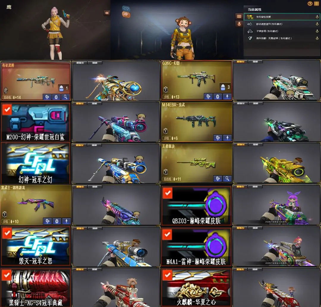 【装备道具】:【传说灵眸】【幻神-冠军之幻幻神-荣耀世冠白鲨cop-幻灵冠军之刃】【g36c-幻影】【qbz-金色蔷薇qbz-巅峰荣耀】雷神(雷神-巅峰荣耀雷神-虎将) 黑骑士(黑骑士-摸金校尉黑骑士-s4冠军) 火麒麟(火麒麟-雷神)毁灭(毁灭-冠军之怒★毁灭-墨兰) 千变 死神 天启 超新星 武圣★m14-玄武 烈火-动感闪耀 黑骑士-海王★王者森决 烈龙 修罗 天神 天神-动感闪耀 麒麟刺★幻灵之锋 屠龙-动感闪耀★擎天-云海游龙 龙啸-烈火龙威 【角色】王者-春(四防)王者潘多拉(四防)鹰 云海玲珑 乔伊教练 暗夜x 潘多拉x 娟娟 麻雀 永久防弹衣 头盔 c4工具钳 手蕾包 七背包 ★生化弹夹防化服变异宝贝死亡之眼★佣兵觉醒手斧镜减速雷★捕食者之眼死亡之眼超级对讲机不退包★超级背包无需换弹查看血量