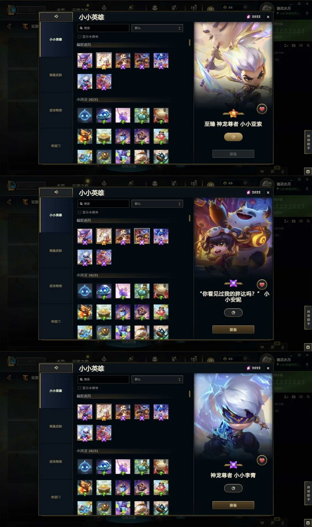 神话幻想圣天龙150臻彩♥️云顶神话至臻小小亚索蛇年小小安妮星守小小阿狸神龙小小李青