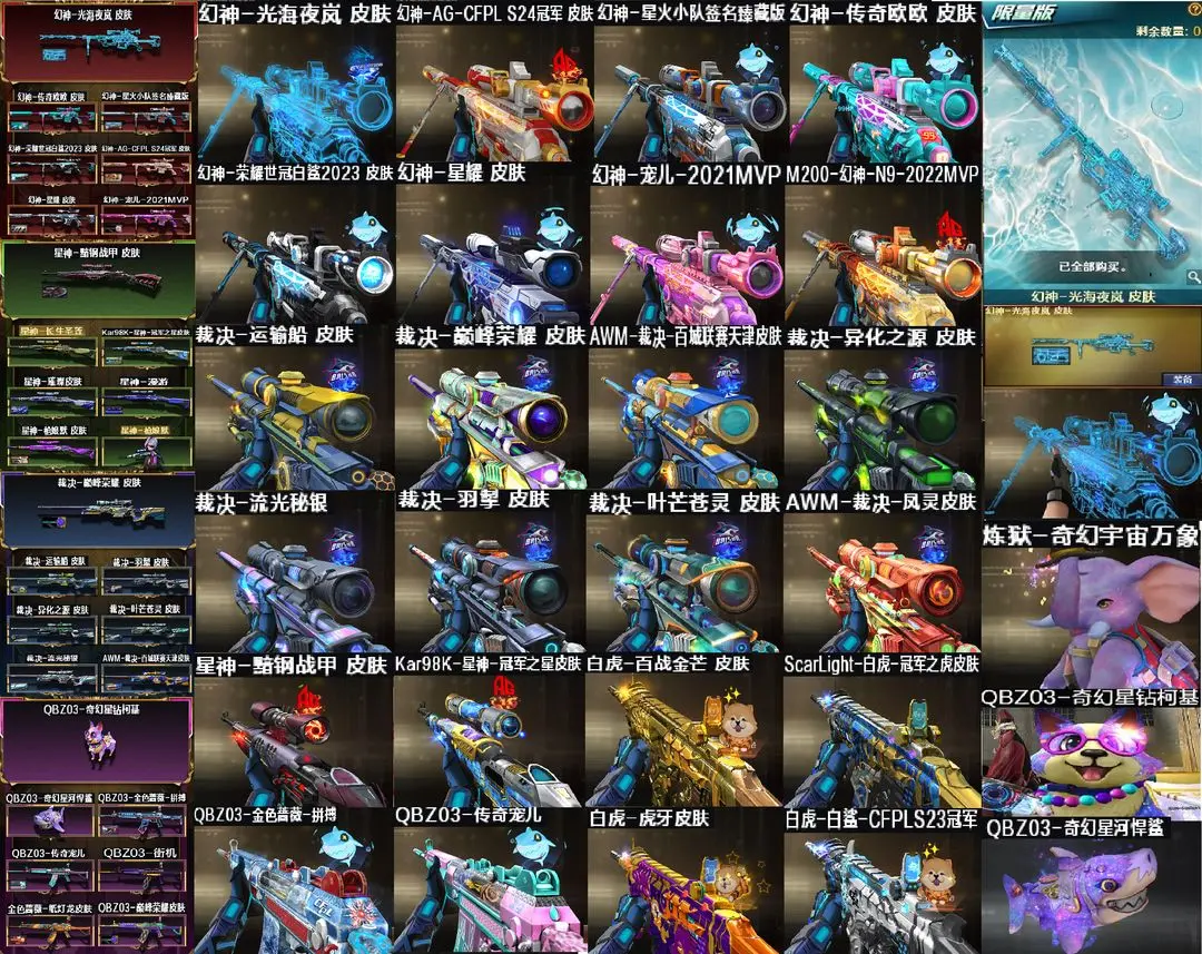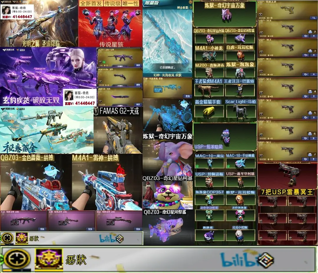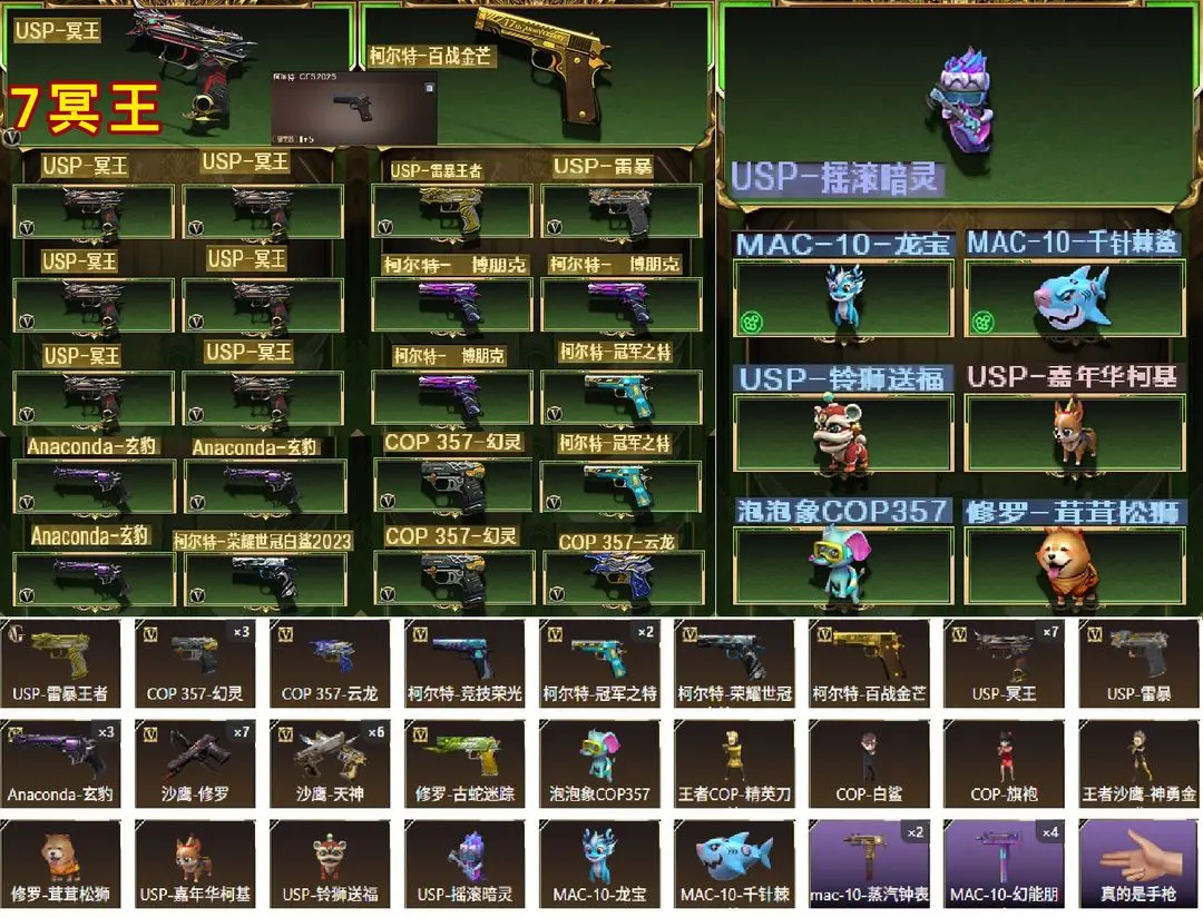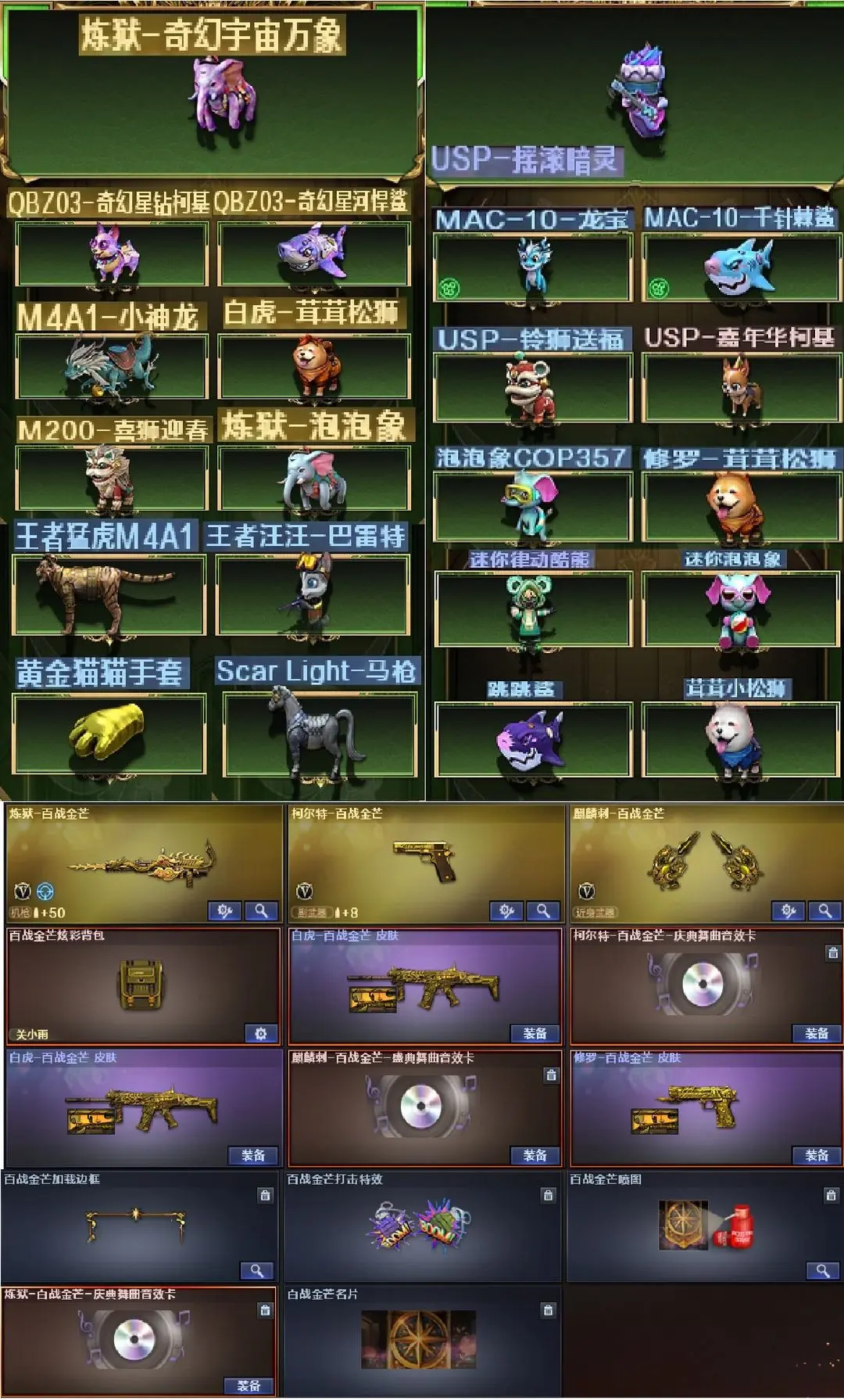 【装备道具】:满氪金拼搏/奇幻全套动物园/满级八面凌龙全皮肤全玩偶音效/炼狱-奇幻宇宙万象/炼狱-泡泡象/传说影煞/传说星骇/传说圣谕/传说梦魇(序列号版)/传说梦魇/传说灵眸/幻神-光海夜岚幻神-星火小队签名臻藏版/幻神-AG-S24冠军/幻神-欧欧/幻神-荣耀世冠白鲨/幻神-宠儿/幻神-星耀/星神-黯钢战甲/星神-冠军之星/裁决-巅峰荣耀/幻影-破浪逐光/白虎-百战金芒/白虎-白鲨/白虎-虎牙/QBZ-传奇宠儿//USP-冥王(7)/Anaconda-玄豹/柯尔特-百战金芒/柯尔特-荣耀世冠白鲨2023/VSK-金蚀/王者风神/幻灵套装/雷暴套装/玄豹套装/臻选金狐套装/炼狱-百战金芒/王者猛虎M4A1/王者玄武/王者汪汪-巴雷特/USP-雷暴王者/QBZ03-奇幻星河悍鲨/M4A1-小神龙/QBZ03-奇幻星钻柯基/白虎-茸茸松狮/M200-喜狮迎春/异变清道夫-蛇影双骄(2)/斯泰尔-蝴蝶/斯泰尔-枪娘暗刃/MAC-千针棘鲨/MAC-龙宝/USP-嘉年华柯基/冠军炽芒破浪逐光/幻神音效卡/星神音效卡/SCAR-玄豹/FAMAS G2-天戎/QBZ-银翼游侠/USP-雷暴