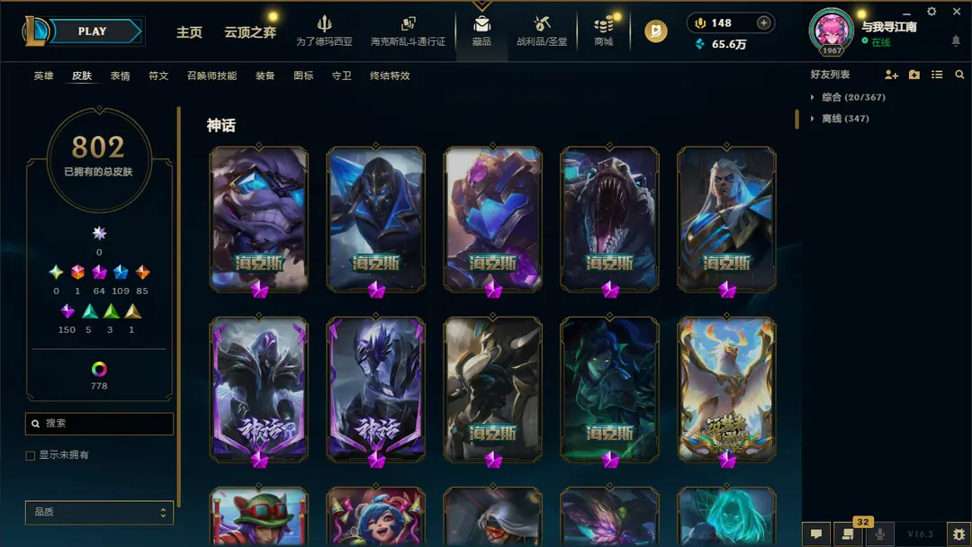 ██ 全英雄 1500皮丨只可匹配禁止其他模式丨80神话丨49至臻丨金卡莎丨莲华套丨EDG套