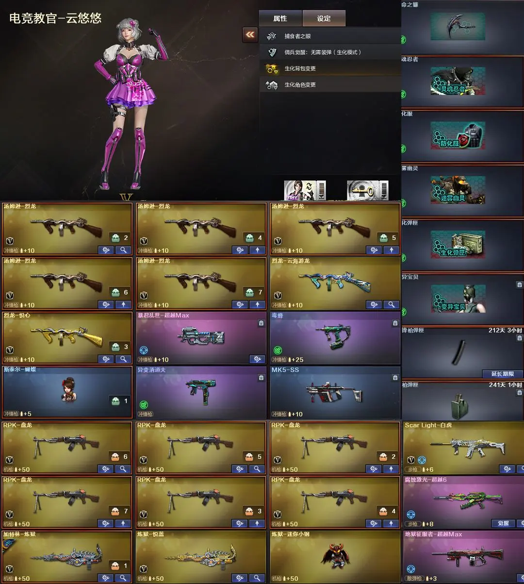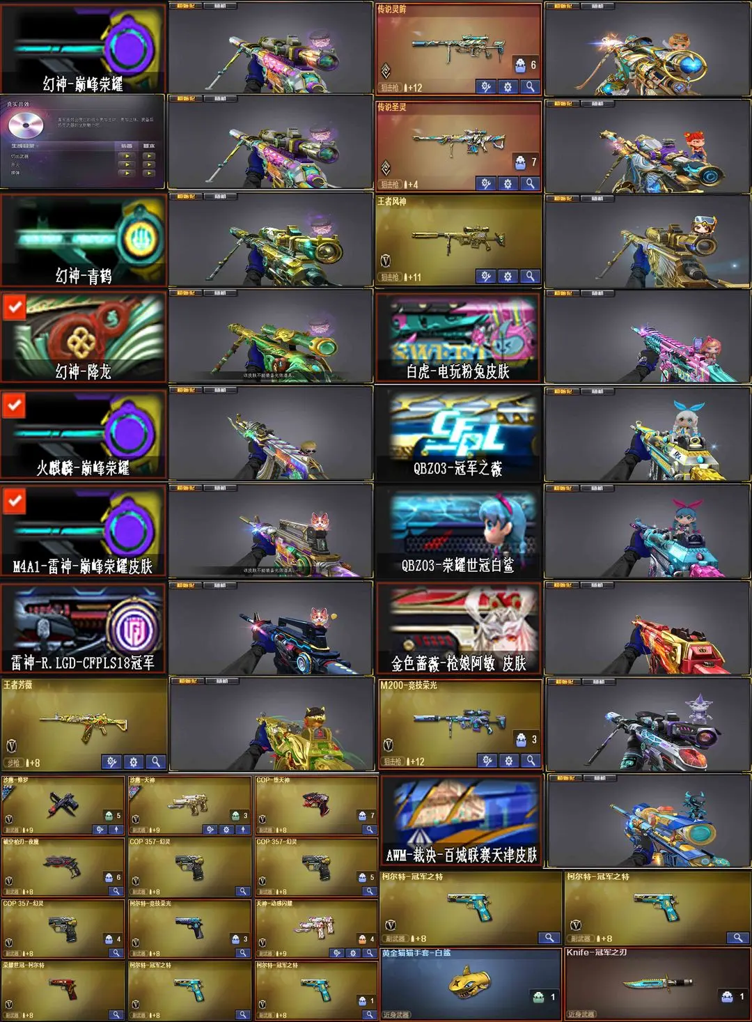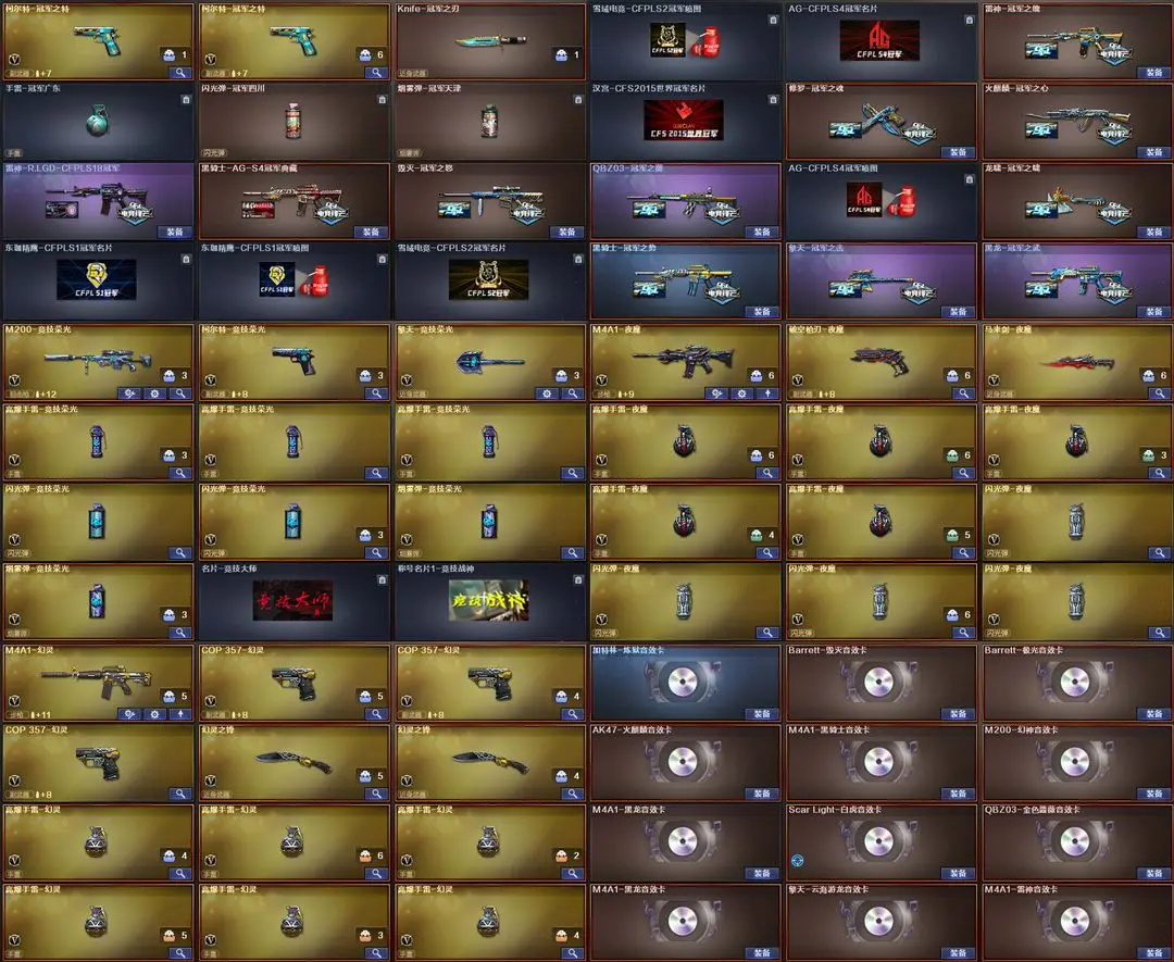 【装备道具】:传说灵眸★传说圣灵★王者风神★王者芳薇★王者潘多拉★全套巅峰荣耀幻神皮肤★青鹤幻神皮肤★降龙幻神皮肤★幻神音效卡★炼狱音效卡★十五全套冠军之薇★冠军之刃★柯尔特-2冠军之特★冠军之心★冠军之击★冠军之武★冠军之怒★冠军之魄★冠军之魂★冠军之啸★雷神LGD冠军★黑骑士S4冠军典藏★竞技套★柯尔特-竞技荣光★擎天-竞技荣光★M4A1幻灵★COP幻灵3把★手枪满★M4夜魔★破空枪刃夜魔★全音效小钢蝴蝶★幻神音效卡加特林-炼狱音效卡★极光音效卡★毁灭音效卡★火融麟音效卡★黑骑士音效卡★黑龙音效卡★白虎音效卡★金色蔷薇音效卡★黑龙音效卡★擎天-云海游龙音效卡★雷神音效卡★火麒麟巅峰荣耀雷神★雷神荣耀之魄★荣耀之怒★裁决天津★枪娘阿敏qbz★火麒麟盘古★火麒麟2018毁灭★毁灭枪娘★耀金雷神★世冠雷神★地狱火★霓裳★电竞教官-云悠悠★王者炽天使★王者复仇★王者樱★迷迭香★王者魅影★樱★影豹★职业选手★职业经理★修道士★6烈龙6盘龙炼狱★炼狱-迷你小钢★斯泰尔-蝴蝶★异变清道夫★毒蜂★MK5-SS★超越MAX★变异宝贝死亡对讲机不退包★佣兵觉醒无需换弹手斧镜减速雷★捕食者之眼查看血量★