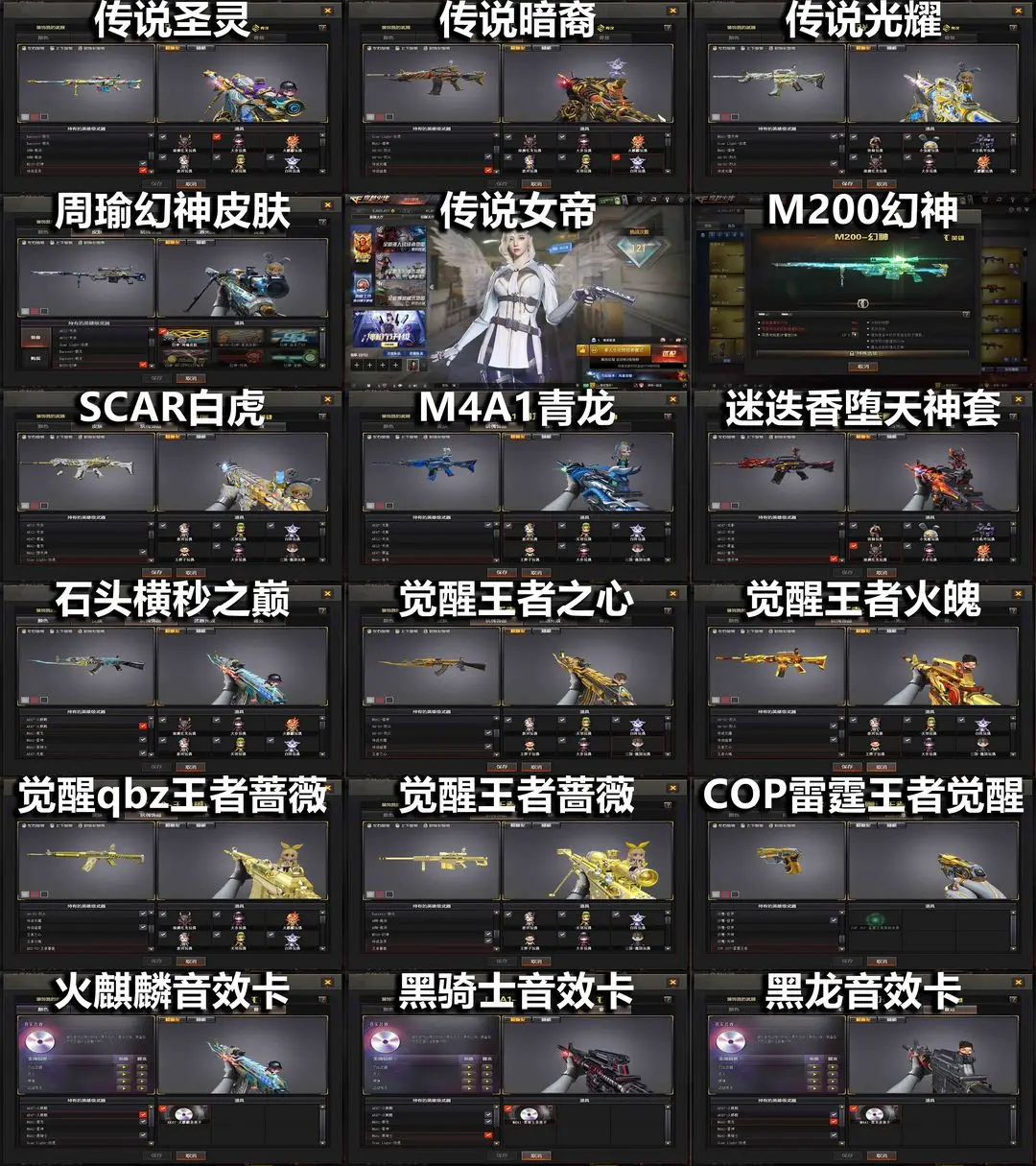 【装备道具】:四防传说女帝★传说圣灵★传说暗裔★传说光耀★周瑜幻神皮肤★M200幻神★SCAR白虎★M4A1青龙★传奇石头横秒之巅★觉醒QBZ王者蔷薇★觉醒王者蔷薇★COP雷霆王者觉醒★觉醒王者之心王者火魄★炫金雷神炫金骑士炫金千变炫金超新星★迷迭香堕天神年套★COP堕天神★火麒麟音效卡黑骑士音效卡黑龙音效卡★葵6烈龙6盘龙炼狱裁决★斯泰尔蝴蝶枪★阐释者★巴雷特水下丽影★金刚伞★黄金生化钩★烈火猎神★生化弹夹防化服变异宝贝死亡之眼对讲机不退包★佣兵觉醒无需换弹手斧镜减速雷★捕食者之眼查看血量★【租用须知】:警告:此号已在四川省成都市鼓楼区进行虚拟财产备案,如遇封号,我们会将恶意租客的注册手机号,姓名,信息和游戏IP地址提交给公安局进行立案,按照原价赔偿,请勿以身试法!