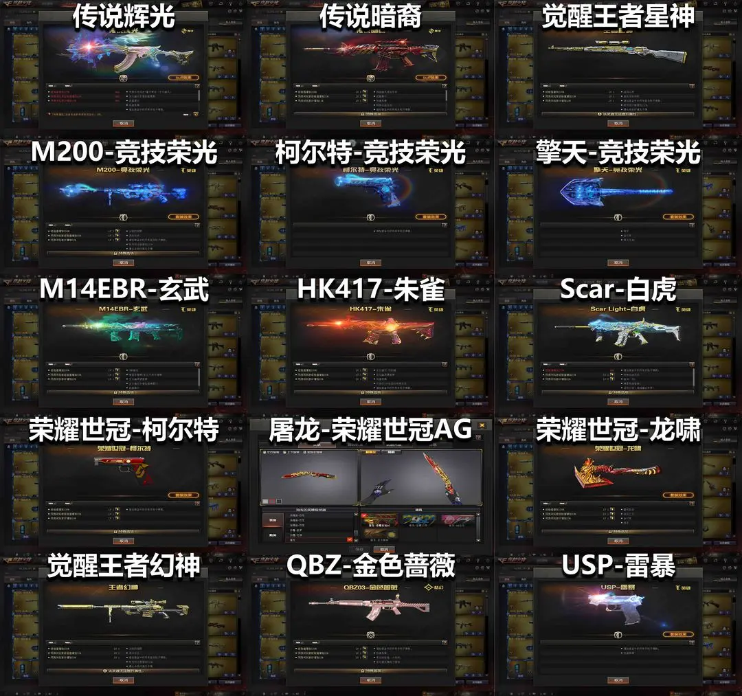 传说辉光暗裔⚡玄武白虎王者星神森决⚡王者幻神竞技云悠悠世冠套⚡USP雷暴6裁决音效卡6盘6烈龙清道夫