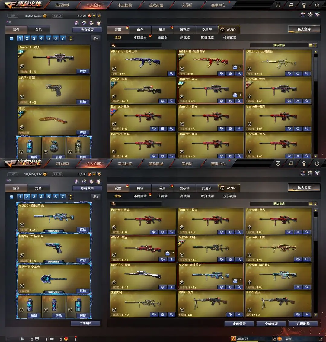 【装备道具】:传说暗裔/传说圣灵/传说灵眸/传说破晓★传说女帝★炽芒蝶刃★幻神-电流骇客 皮肤★幻神-宠儿-2021MVP★M200-幻神★幻神音效卡M200-竞技荣光★王者星神-觉醒版★AWM-裁决★王者之决-觉醒版★M4A1-青龙★Scar Light-白虎★HK417-朱雀★白虎-电玩蓝兔★QBZ03-金色蔷薇★COP 357-幻灵★破空枪刃-夜魔★荣耀世冠-柯尔特★柯尔特-竞技荣光★王者玉锋★超新星-热带奇洋★雷神-荣耀世冠AG修罗-冠军之魂毁灭-CFS2020/毁灭-战神张飞★毁灭-荣耀之怒★毁灭耀金皮肤/雷神-虎将/黑骑士耀金皮肤★金色蔷薇-枪娘阿敏★白虎-暗星/白虎-电玩粉兔★屠龙-星火燎原★裁决音效卡★黑骑士音效卡★金色蔷薇音效卡★白虎音效卡★火麒麟音效卡/毁灭音效卡/雷神音效卡★零/王者樱-热浪之夏/电竞少女/铁骑荣耀/葵-赛朋/云海玲珑★爆破挑战全装★可排位★生化弹夹防化服变异宝贝死亡之眼对讲机不退包★佣兵觉醒无需换弹手斧镜减速雷★捕食者之眼查看血量★