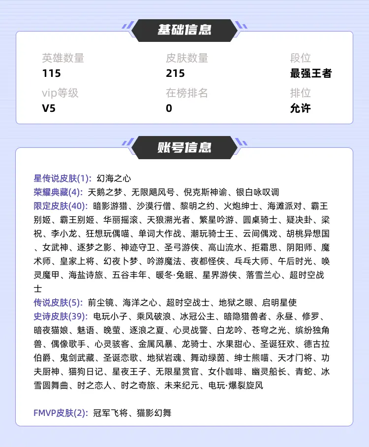 【不能添加好友的按照这个方法添加:搜索好友名字“AA”-点击AA名片进入AA主页-点击右下角关注-AA点击游戏关系找朋友上面那个关注/粉丝的粉丝界面进行回关-任意一方给对方送一个金币就能成为游戏好友了】号主有话说 本店承诺所有王者,只要分够都可以排位赛 左下角↓↓↓收藏店铺,所有账号1折出租 店铺24小时自动改密顶号科技,放弃白嫖吧 ? 禁止游戏内挂机逃跑、辱骂、等所有扣分行为! ? 禁止利用账号诈骗送皮肤等非法牟利行为! ? 禁止恶意毁号 退战队 重置游戏二级密码! ? 所有账号为一单一密码 不存在顶号 如密码泄露投诉顶号者一律拉黑! ? 平台严厉打击使用游戏外挂皮肤美化包等非法游戏工具如有发现我们将会上报平台内部技术部门封杀所有账户IP以及关联账号! 毁坏虚拟财产罪,破坏计算机安全罪】 如发现以上违规行为 我们必将严惩不怠】 文明游戏素质游戏 让我们共建美好租号平台 喜欢本账号请点☆收藏☆ 方便下次租用