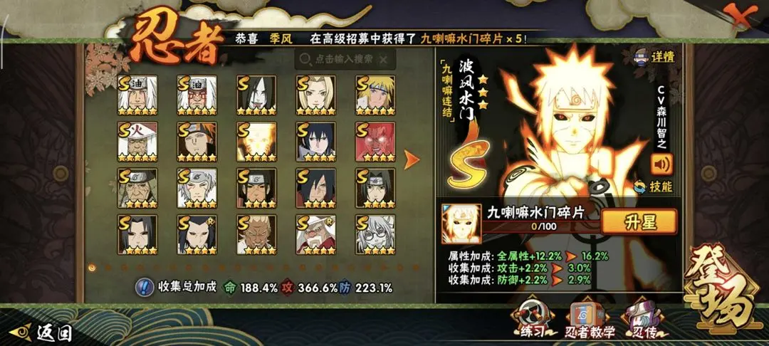 漂泊佐助全套☀️全忍者全皮肤☀️3900万全S全A☀️高魅力☀️年☀️氪金满配