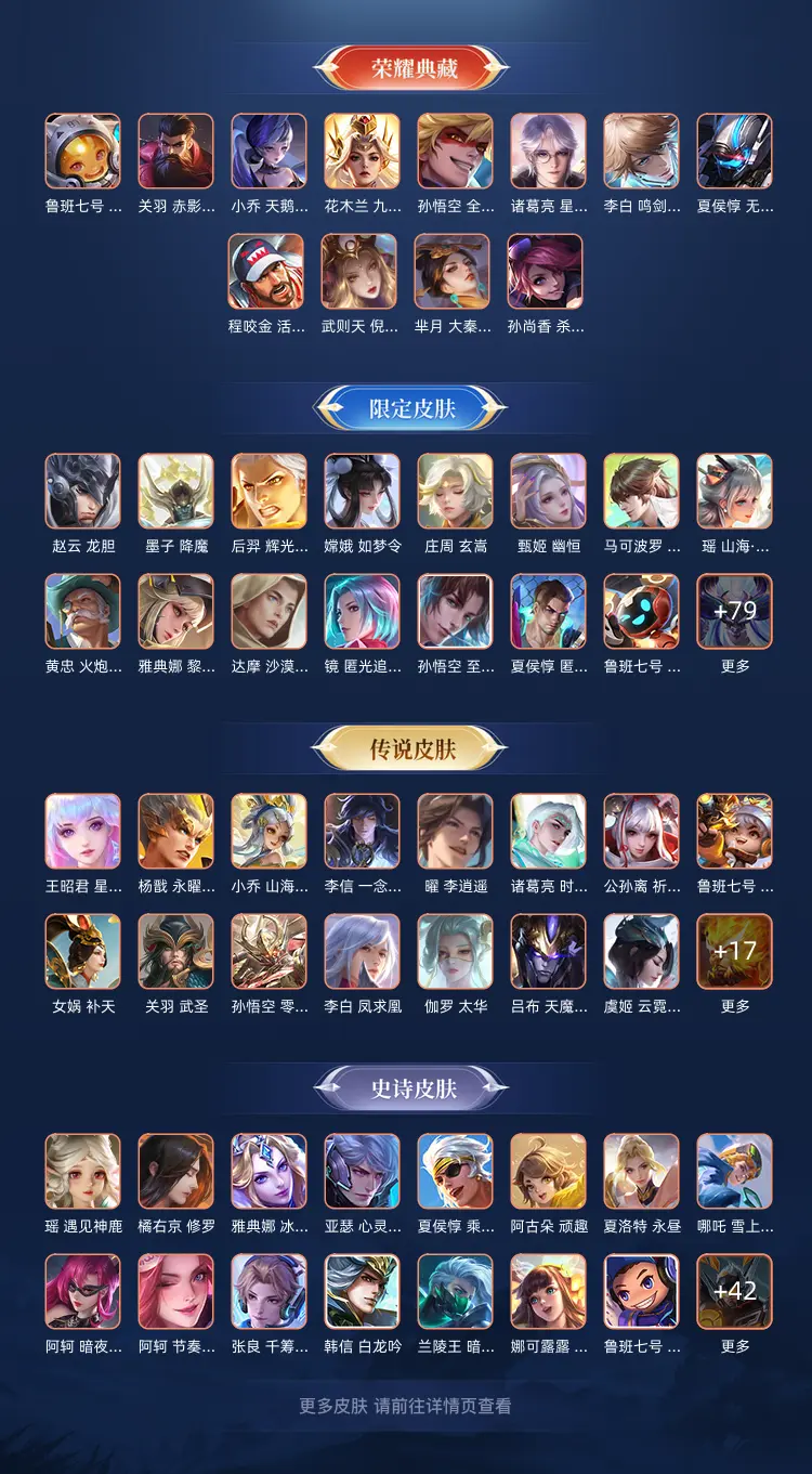 本游戏账号: V10用户,基础段位:至尊星耀III,英雄多,皮肤多。典藏皮肤11个,感受典藏皮肤带来的优质体验快感,FMVP皮肤5个,尽情享受FMVP皮肤带来的主角光环, 私人所属英雄皮肤有:诸葛亮 星域神启||孙尚香 杀手不太冷||鲁班七号 星空梦想||芈月 大秦宣太后||夏侯惇 无限飓风号||李白 鸣剑·曳影||武则天 倪克斯神谕||程咬金 活力突击||花木兰 九霄神辉||孙悟空 全息碎影||小乔 天鹅之梦,等等