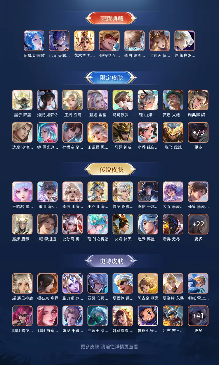 本游戏账号: V10用户,基础段位:至尊星耀III,英雄多,皮肤多。典藏皮肤5个,感受典藏皮肤带来的优质体验快感,FMVP皮肤7个,尽情享受FMVP皮肤带来的主角光环, 私人所属英雄皮肤有:李白 鸣剑·曳影||武则天 倪克斯神谕||貂蝉 幻阙歌||花木兰 九霄神辉||小乔 天鹅之梦铠 绛天战甲||百里守约 碎云||孙尚香 末日机甲||上官婉儿 神器·万象笔||周瑜 音你心动||李白 诗剑行||马可波罗 深海之息||狄仁杰 神器·狴犴令||狄仁杰 超时空战士||达摩 黄金狮子座||武则天 海洋之心||貂蝉 仲夏夜之梦||王昭君 乞巧织情||张良 黄金白羊座||后羿 黄金射手座||李元芳 飞鸢探春||小乔 音你心动,等等