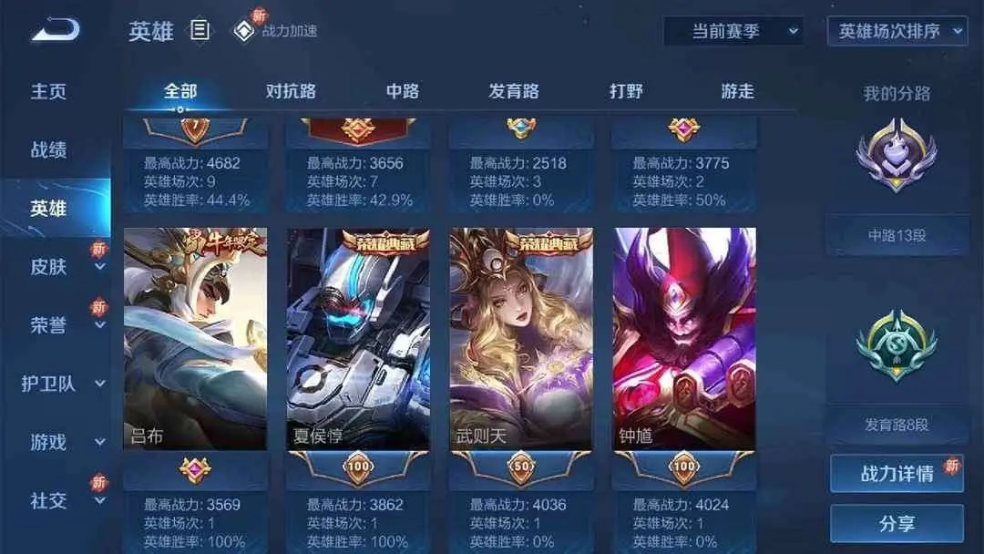 战绩:游戏场次5406 1176次MVP 胜率56.47% 战斗力90049让你轻松上分