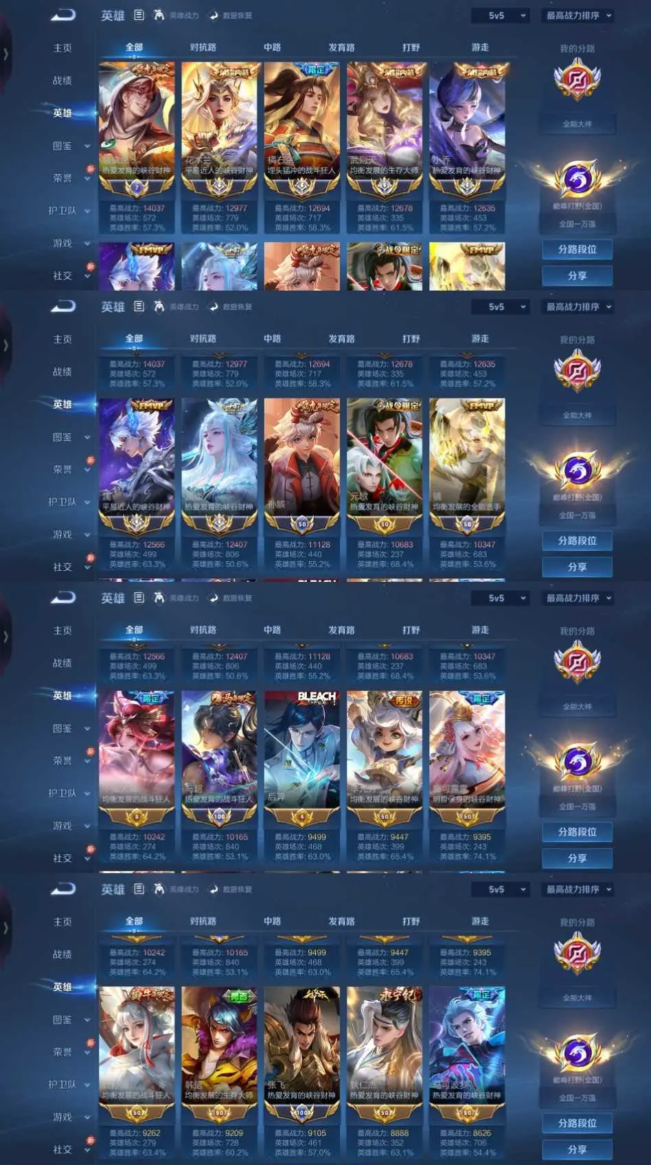 撤单拉黑四月在榜小国标澜+禁巅峰2k+7个省标马超玄策镜❤️历大国服澜花木兰露娜马超镜~