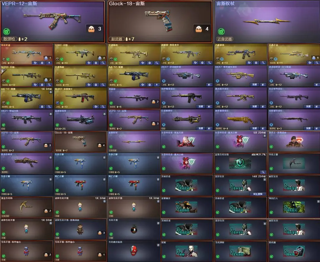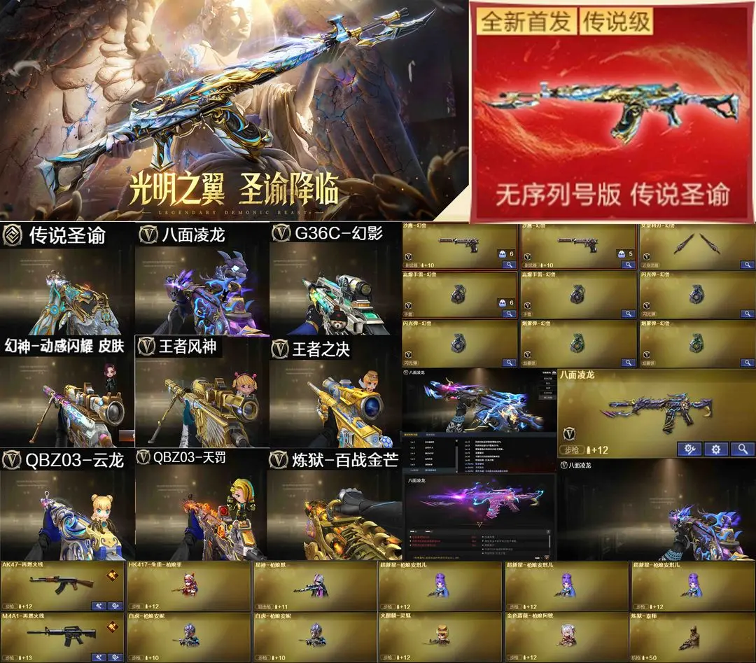 【装备道具】:105v【亮点解析 幻神三件套 】幻兽套【m200幻神+幻神音效卡+幻神动感闪耀皮肤】【王者风神】【传说圣谕】【g36c幻影】【qbz金色蔷薇+卡】【八面凌龙】【qbz天罚+天罚音效卡】【火麒麟+卡】【黑龙】【雷神星空/雷神音效卡/雷神炙焰魔龙】【毁灭音效卡卡+毁灭ag15冠军】【极光】 【武器:cop雷霆 武圣 QBZ-云龙 觉醒王者凤吟 觉醒王者之决 炼狱 】 【7手呛:修罗 天神*2 沙鹰幻兽*2 雷霆王者 雷霆 】 【10刀具:屠龙*2 擎天 麒麟刺 尼泊尔雷霆 斩神刀雷暴 尼泊尔雷霆 女皇利刃幻兽 】 【10雷套:雷霆雷*6 幻兽雷*2 雷霆王者雷*2】 【小人呛:白虎呛娘安妮 超新星呛娘 火麒麟灵狐 金色蔷薇呛娘 星神呛娘默 炼狱秦师 】 【音效卡:天罚音效卡 金色蔷薇音效卡 雷神音效卡 火麒麟音效卡 幻神音效卡 毁灭音效卡 】 【四防角色:王者魅影 】★变异宝贝死亡对讲机不退包★佣兵觉醒无需换弹手斧镜减速雷★捕食者之眼查看血量★COP雷霆王者