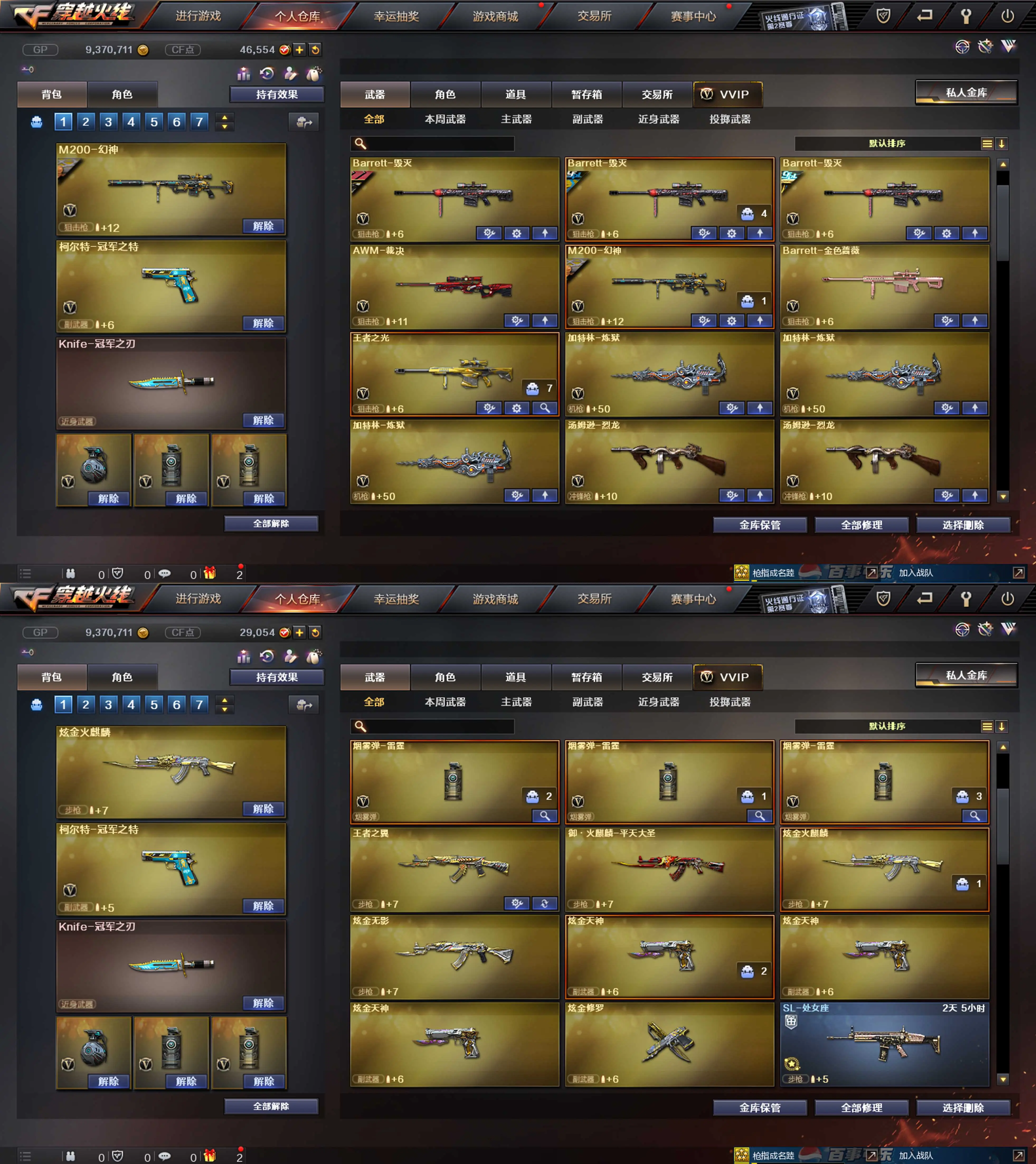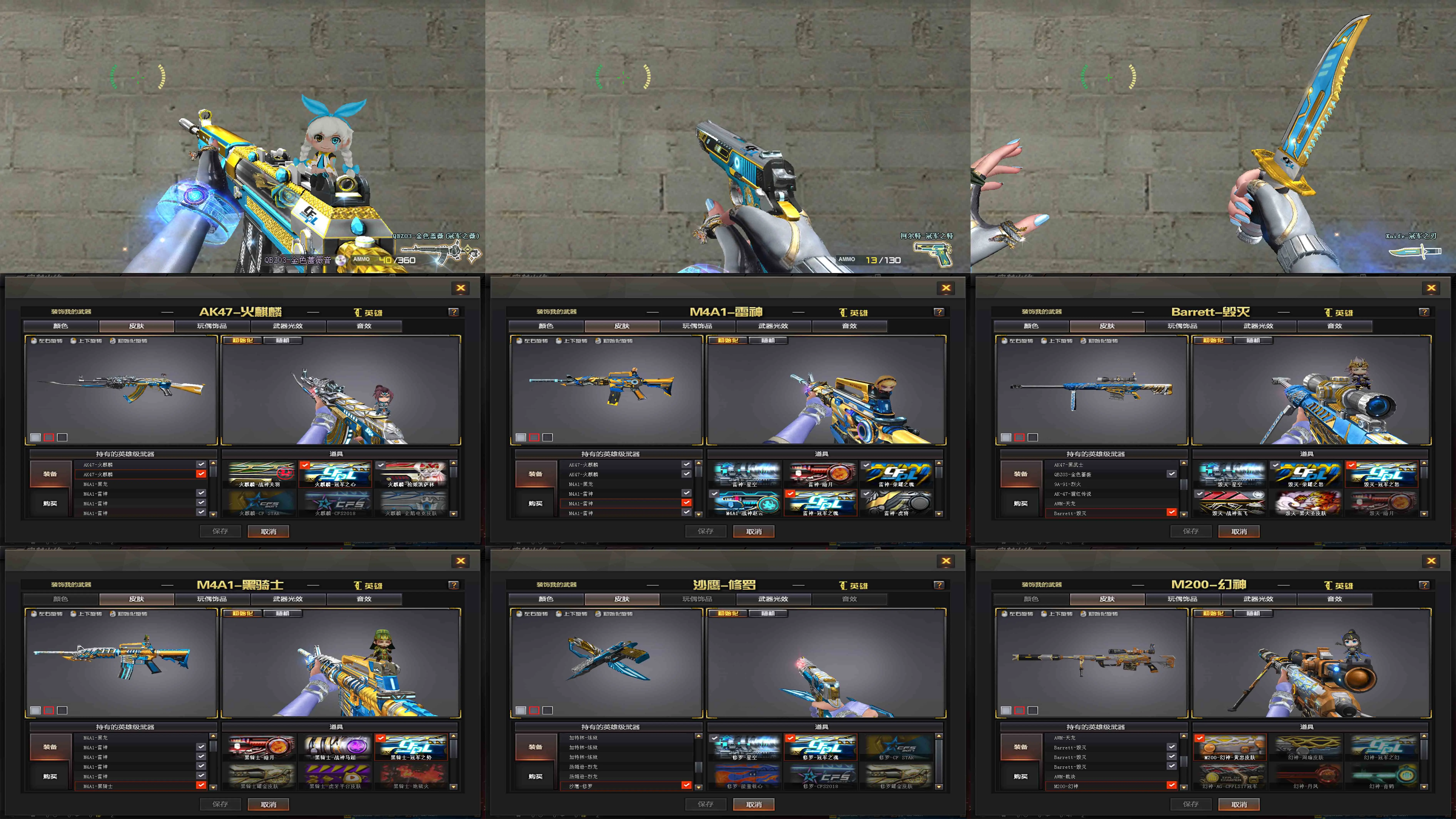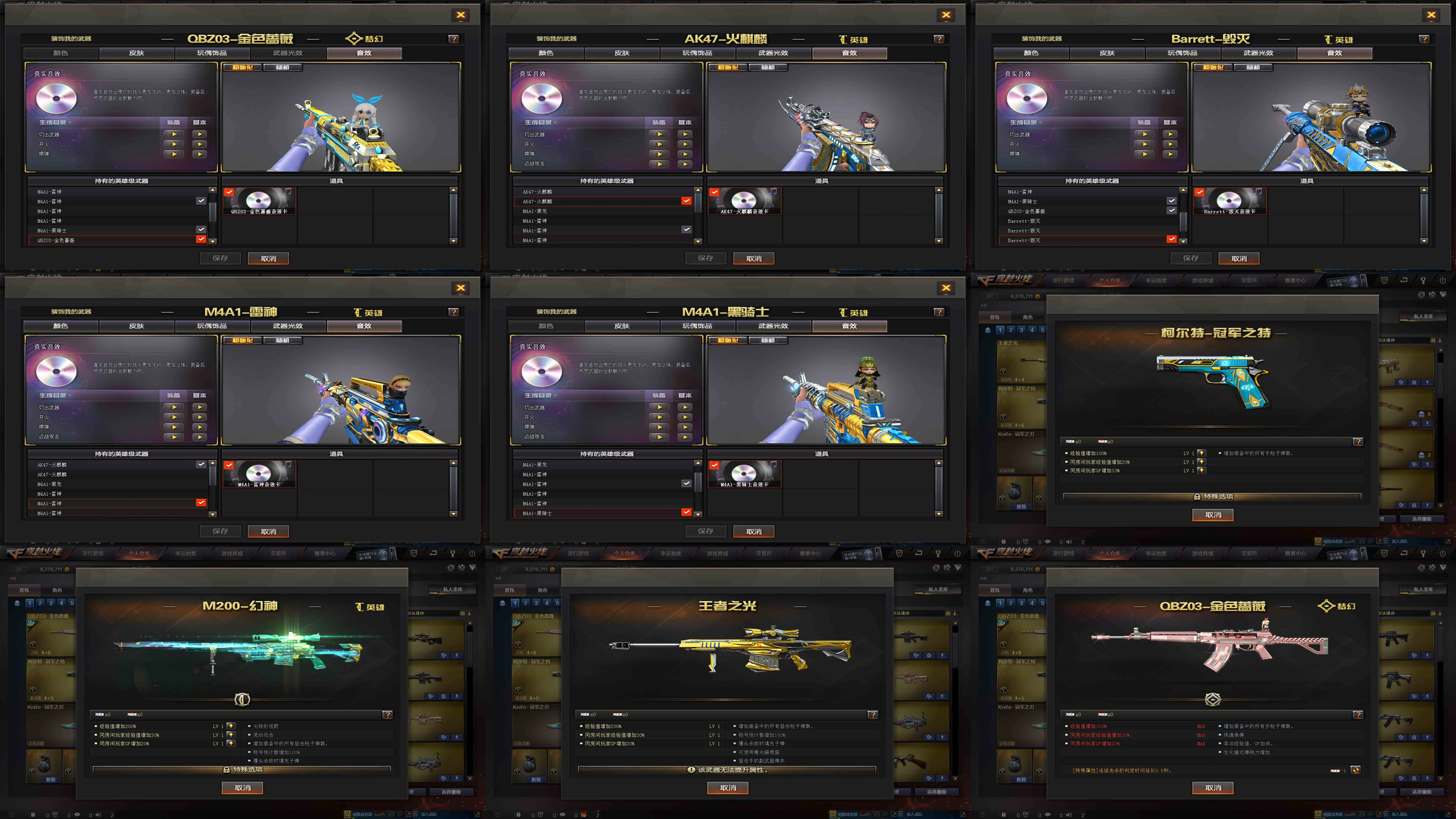 【装备道具】:【m200-幻神+幻神-黄忠★金色蔷薇-冠军之薇★柯尔特-冠军之特★Knife-冠军之刃】 【火麒麟+火麒麟音效卡+火麒麟-枪娘凯萨林 皮肤+火麒麟-冠军之心★火麒麟-战神关羽 皮肤】 【雷神+雷神音效卡+雷神-冠军之魄 皮肤+雷神-荣耀之魄 皮肤+雷神-战神赵云 皮肤】 【 毁灭+毁灭音效卡+毁灭-荣耀之怒 ★毁灭-冠军之怒 皮肤+毁灭-战神张飞 皮肤】 【qbz金色蔷薇★qbz音效卡★qbz-冠军之薇 皮肤】 黑龙 【黑骑士+黑骑士音效卡+黑骑士-冠军之势 皮肤+黑骑士-战神马超 皮肤】【审判者+零+葵+魅影+炫+王者复仇+魅影】 ★金色蔷薇音效卡火麒麟音效卡雷神音效卡毁灭音效卡黑骑士音效卡 ★王者之武 天龙 裁决 芭蕾特金色蔷薇 觉醒王者之光 3炼狱 烈龙 修罗+修罗-冠军之魂 皮肤 天神 屠龙 龙啸 擎天 麒麟刺 尼泊尔-雷霆 雷霆手蕾套4套★王者之翼 炫金火麒麟 炫金无影 炫金天神 炫金修罗★双面神★爆破生化挑战全装★生化弹夹防化服变异宝贝死亡之眼★佣兵觉醒手斧镜减速雷★捕食者之眼死亡之眼超级对讲机不退包★超级背包无需换弹查看血量★