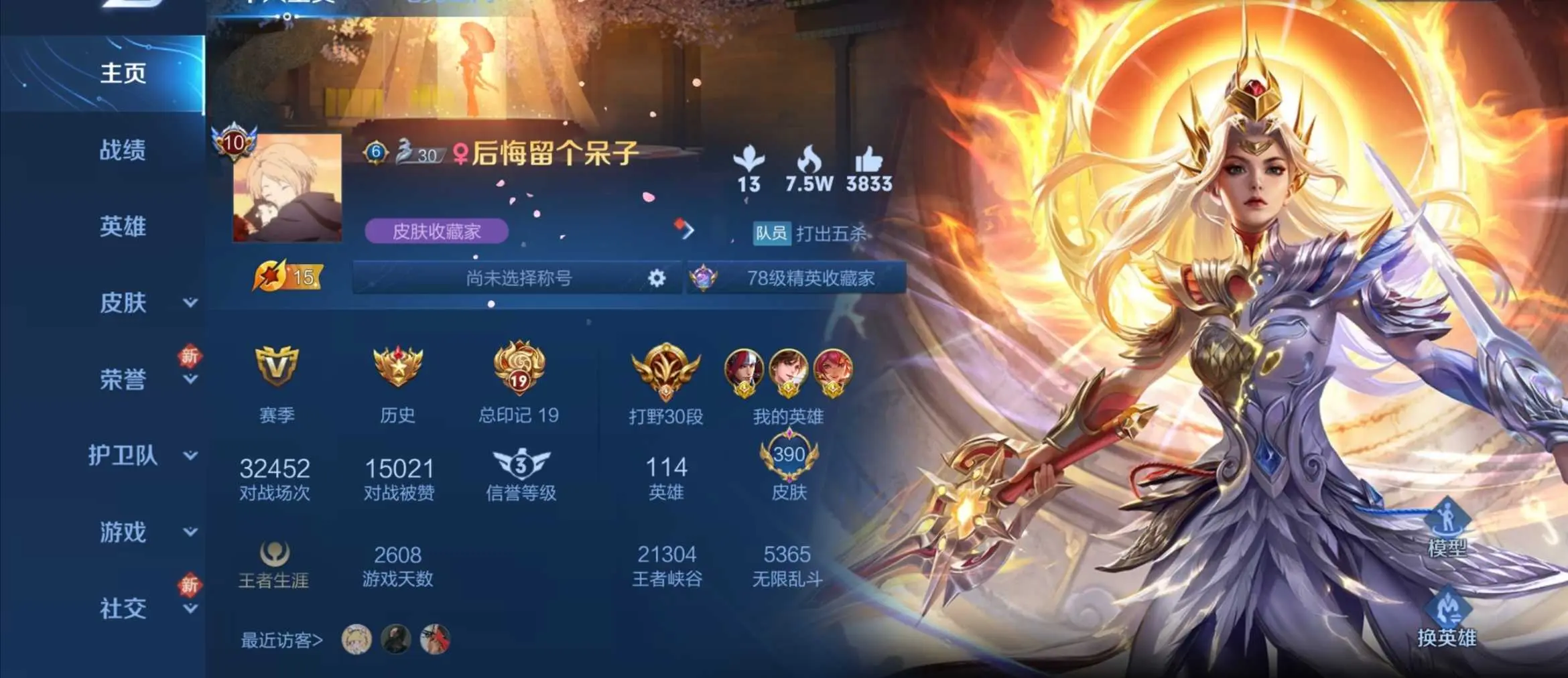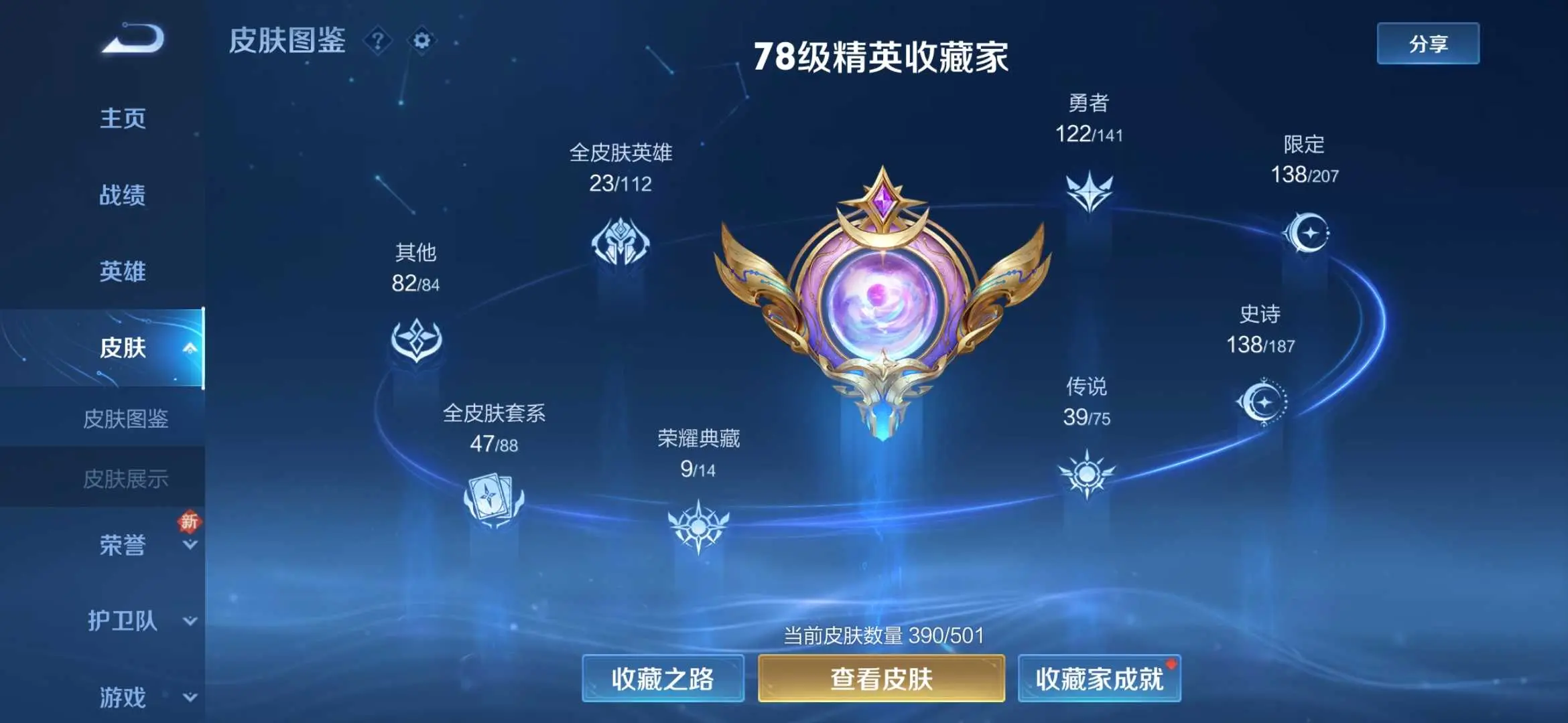 本游戏账号: V10用户,基础段位:至尊星耀V,英雄多,皮肤多。典藏皮肤9个,感受典藏皮肤带来的优质体验快感,FMVP皮肤6个,尽情享受FMVP皮肤带来的主角光环, 私人所属英雄皮肤有:孙尚香 杀手不太冷||鲁班七号 星空梦想||芈月 大秦宣太后||夏侯惇 无限飓风号||武则天 倪克斯神谕||程咬金 活力突击||花木兰 九霄神辉||孙悟空 全息碎影||小乔 天鹅之梦,等等