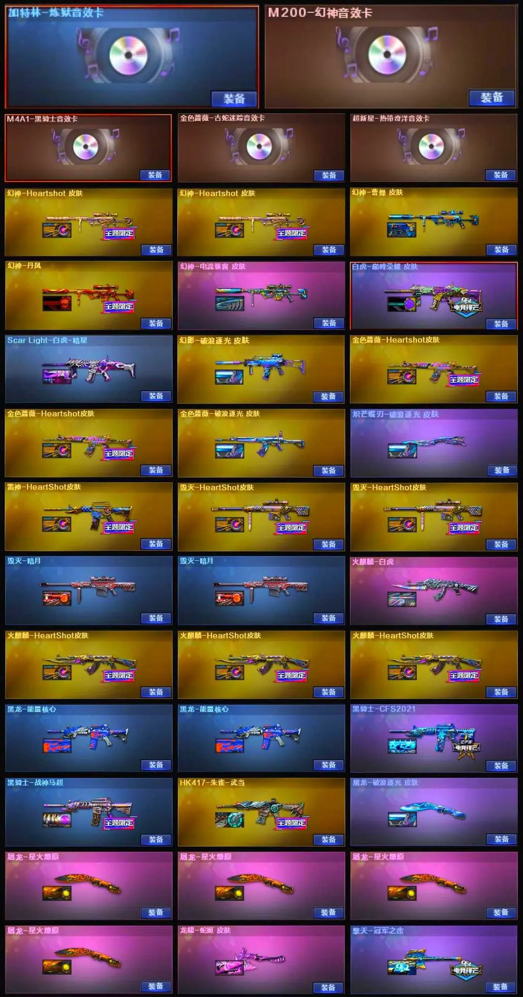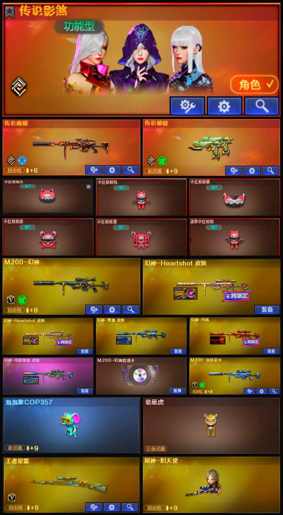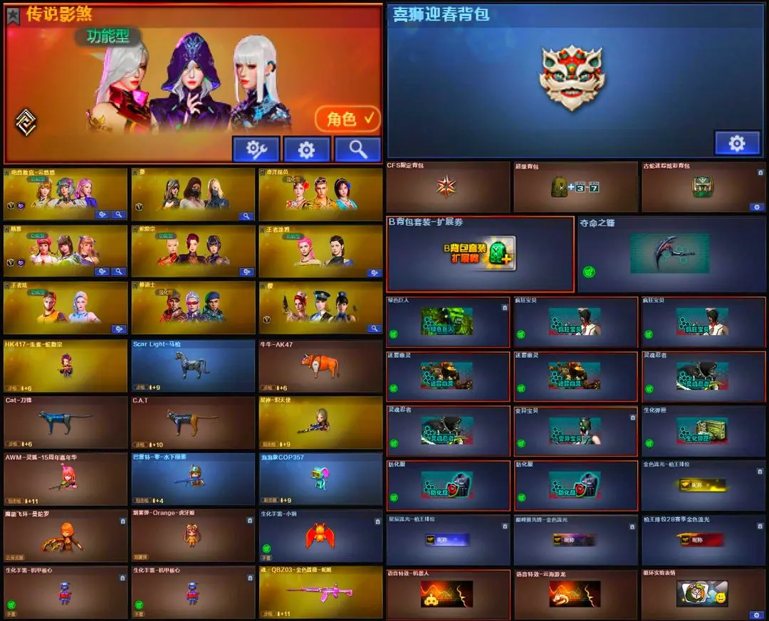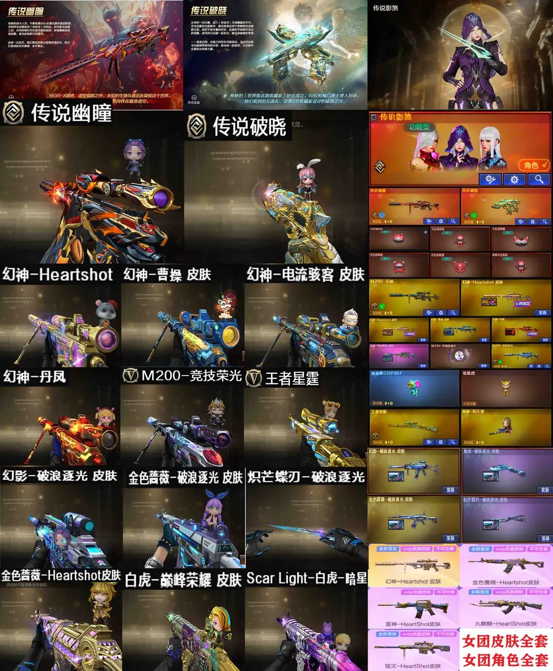 【装备道具】:【三传说】/【三防传说】/传说影煞/传说幽瞳/传说破晓/【幻神三件套】/幻神/幻神音效卡/幻神Heartshot/幻神曹操/幻神电流骇客/幻神丹凤/王者星霆/M200竞技荣光套柯尔特无冕之王/【3把炽芒蝶刃】/炽芒蝶刃/炽芒蝶刃破浪逐光/白虎/白虎巅峰荣耀/白虎暗星/朱雀/朱雀武当/青龙/G36C幻影/破浪逐光/QBZ金色蔷薇/*3/金色蔷薇HeartShot/金色蔷微破浪逐光/金色蔷薇古蛇迷踪/QBZ金色蔷薇古蛇迷踪音效卡/QBZ云龙/雷霆王者套/柯尔特竞技荣光/*2/COP雷霆王者/屠龙/擎天竞技荣光/荣耀世冠龙啸/龙味烈火龙威/四套雷霆王者手雷/四套云龙手雷/三套竞技荣光手雷/【音效卡皮肤】/炼狱加特林音效卡/黑骑士音效卡/超新星热带奇洋音效卡/毁灭HeartShot/火麒麟HeartShot/黑骑士CFS2021/屠龙星火燎原/屠龙破浪逐光/擎天冠军之击/龙味蛇姬/【3个四防角色】/王者涂鸦/王者炫/灵动武士/【角色】/电竞教官云悠悠/晴雅/幽/葵/樱/奇洋探员/蛇隐宗/修道士/【玩偶武★变异宝贝死亡对讲机不退包★佣兵觉醒无需换弹手斧镜减速雷★捕食者之眼查看血量★
