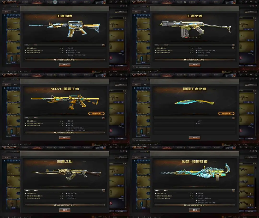 【装备道具】:M200幻神竞技荣光★柯尔特竞技荣光★擎天-竞技荣光★电竞教官-云悠悠★雷神-幻想★传说梦魇★98K-星神★炼狱惊涛骇浪★觉醒王者冰魄★觉醒王者之烈★觉醒王者之心★M4A1雷霆王者★雷霆王者之锋★王者葵惊若翩鸿★USP雷暴★炫金骑士炫金无影炫金武士★天龙曼陀罗★黑骑士音效卡★黑骑士耀金★摸金校尉★雷神机甲刑天★传奇白鲨★荣耀之证卡牌★qbz金色蔷薇★cop旗袍★迷你手枪★胡萝卜匕首★激光毁灭者★乱世超越★金魔★神圣爆裂者★征服者超越★阐释者死亡之眼★樱战斗天使★云悠悠魅影★樱战斗天使★零热舞青春★MAC涂鸦★生化弹夹防化服变异宝贝死亡之眼对讲机不退包★佣兵觉醒无需换弹手斧镜减速雷★捕食者之眼查看血量★