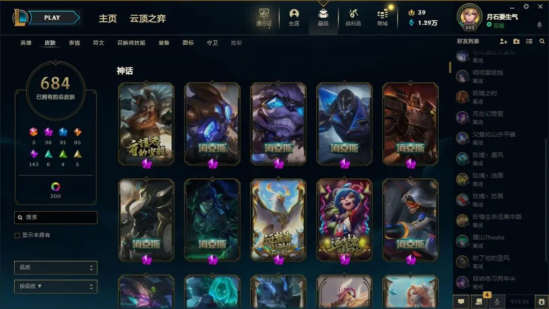 ██ 全英雄 1400皮丨禁排位丨50神话丨莲华套丨金锐雯丨玉剑男刀丨电玩卡莎丨神龙李青丨银白审判
