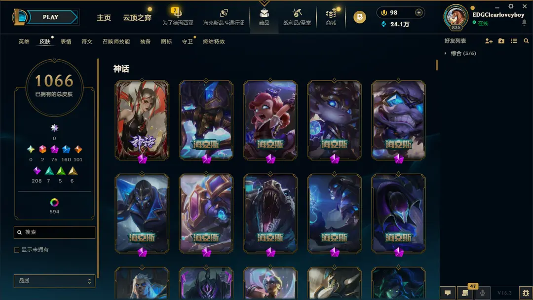 | 角色: EDGClearloveyboy#33937 | 等级: 886级 荣耀黄金II |