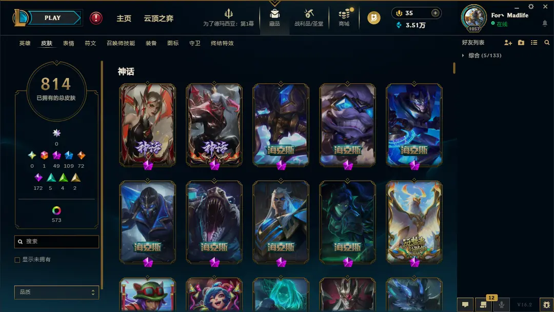 | 角色: For丶Madlife#82133 | 等级: 1090级 华贵铂金II |