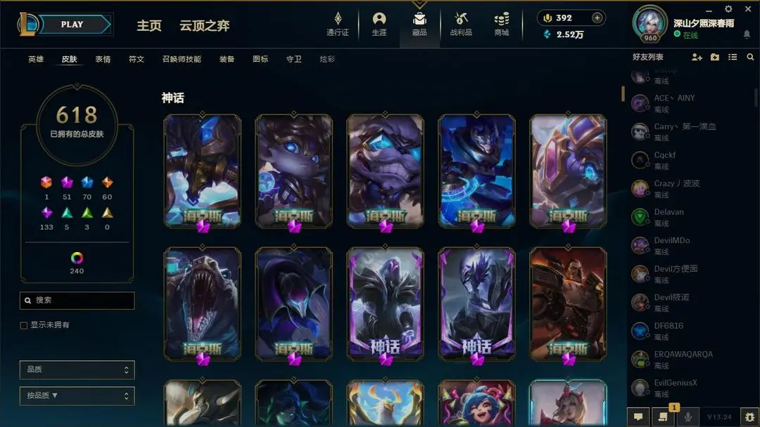 ██ 全英雄 1200皮丨60神话丨可排位丨金卡莎丨神龙李青丨EDG男枪丨斗魂莎弥拉丨莲华亚索狐狸