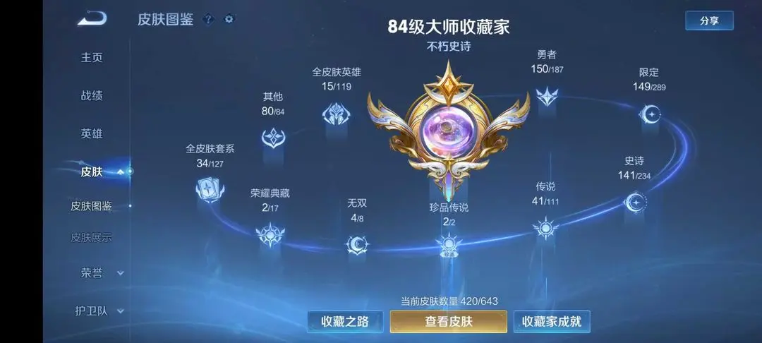 本游戏账号: V10用户,基础段位:最强王者,英雄多,皮肤多。典藏皮肤4个,感受典藏皮肤带来的优质体验快感,FMVP皮肤4个,尽情享受FMVP皮肤带来的主角光环, 私人所属英雄皮肤有:花木兰 九霄神辉||小乔 天鹅之梦||韩信 弑枪猎影||程咬金 活力突击鲁班七号 江户川柯南||马可波罗 怪盗基德||王昭君 映山客||桑启 鸣野蒿||艾琳 觅芳踪||宫本武藏 地狱之眼||周瑜 音你心动||孙尚香 末日机甲||吕布 曦玄引||貂蝉 曦玄引||赵云 乘龙·铭钟鼎||孙策 乘龙·淬吴钩||孙尚香 乘龙·问璇玑||马超 琥珀纪元||后羿 黄金射手座||露娜 霜月吟||虞姬 云霓雀翎||吕布 遇见神鼓||宫本武藏 惊梅引||貂蝉 仲夏夜之梦||马可波罗 妄想实况||诸葛亮 鹤羽星尊||公孙离 记忆之芯||花木兰 燃星之曲||孙悟空 齐天大圣||娜可露露 前尘镜||不知火舞 绯月行||孙尚香 音你闪耀||孙尚香 异界灵契||王昭君 乞巧织情||曜 李逍遥||公孙离 祈雪灵祝||虞姬 启明星使
