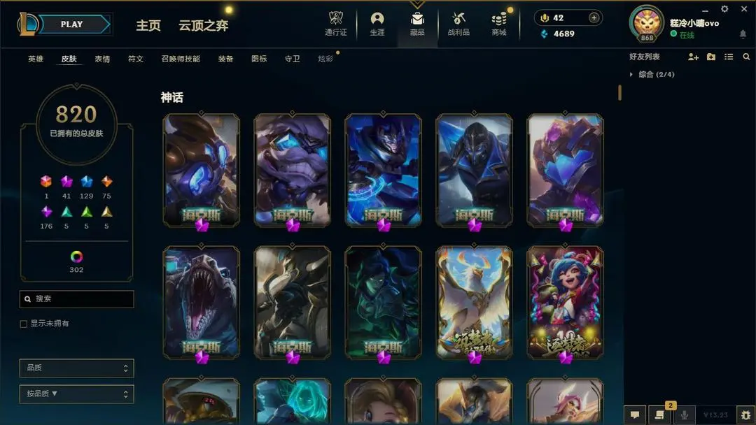 ██ 全英雄 1600皮丨50神话丨可排位丨鼠年套丨神龙李青丨星守卡莎丨玉剑男女刀丨莲华永恩亚索