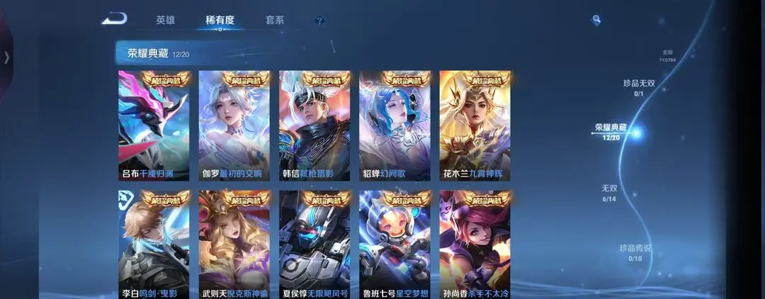 V10丨714皮肤丨12典藏水晶有吕布丨6无双丨包天特惠