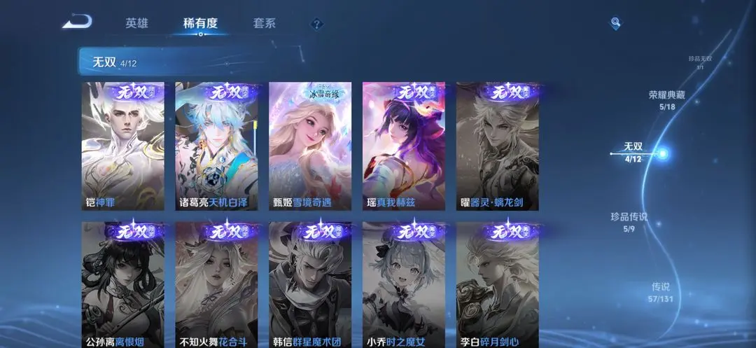 本游戏账号: V10无双贵族用户,基础段位:至尊星耀I,英雄多,皮肤多。典藏皮肤3个,感受典藏皮肤带来的优质体验快感,FMVP皮肤11个,尽情享受FMVP皮肤带来的主角光环, 私人所属英雄皮肤有:虞姬 神鉴启示录||花木兰 九霄神辉||貂蝉 幻阙歌赵云 淬星耀世||百里守约 碎云||澜 电玩·雷克斯||典韦 战鼓燎原||公孙离 祈雪灵祝||杨玉环 星之鸣奏||鲁班七号 江户川柯南||马可波罗 怪盗基德||周瑜 音你心动||孙悟空 齐天大圣||王昭君 映山客||桑启 鸣野蒿||庄周 牧神诗旅||云中君 群星魔术团||橘右京 枫霜尽||后羿 黄金射手座||亚连 落雪白狼||吕布 曦玄引||貂蝉 曦玄引||王昭君 乞巧织情||孙策 乘龙·淬吴钩||赵云 乘龙·铭钟鼎||孙尚香 乘龙·问璇玑||马超 琥珀纪元||小乔 音你心动||蔡文姬 花朝如约||吕布 遇见神鼓||铠 绛天战甲||诸葛亮 时雨天司||李白 诗剑行||宫本武藏 惊梅引||诸葛亮 鹤羽星尊||马可波罗 妄想实况||伽罗 炽