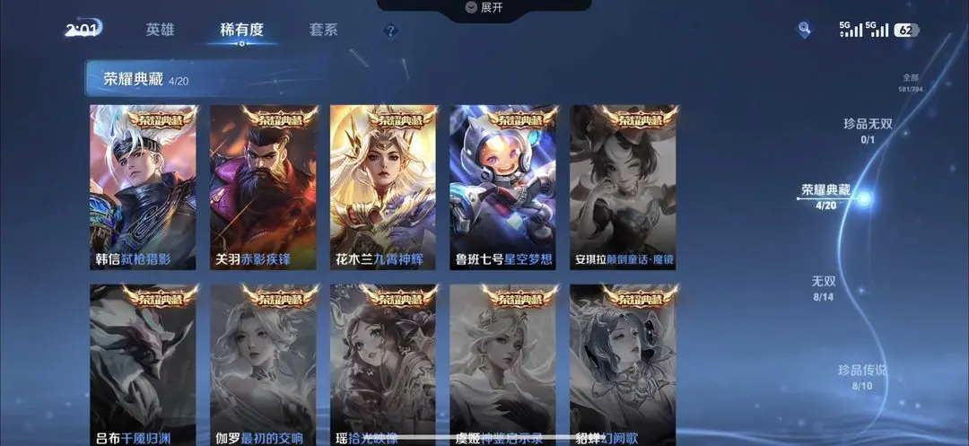 本游戏账号: V10用户,基础段位:最强王者,英雄多,皮肤多。铭文:0-10,典藏皮肤10个,感受典藏皮肤带来的优质体验快感,FMVP皮肤8个,尽情享受FMVP皮肤带来的主角光环, 私人所属英雄皮肤有:鲁班七号 星空梦想||芈月 大秦宣太后||小乔 天鹅之梦||夏侯惇 无限飓风号||貂蝉 幻阙歌||虞姬 神鉴启示录||孙尚香 杀手不太冷||花木兰 九霄神辉||韩信 弑枪猎影||孙悟空 全息碎影,等等