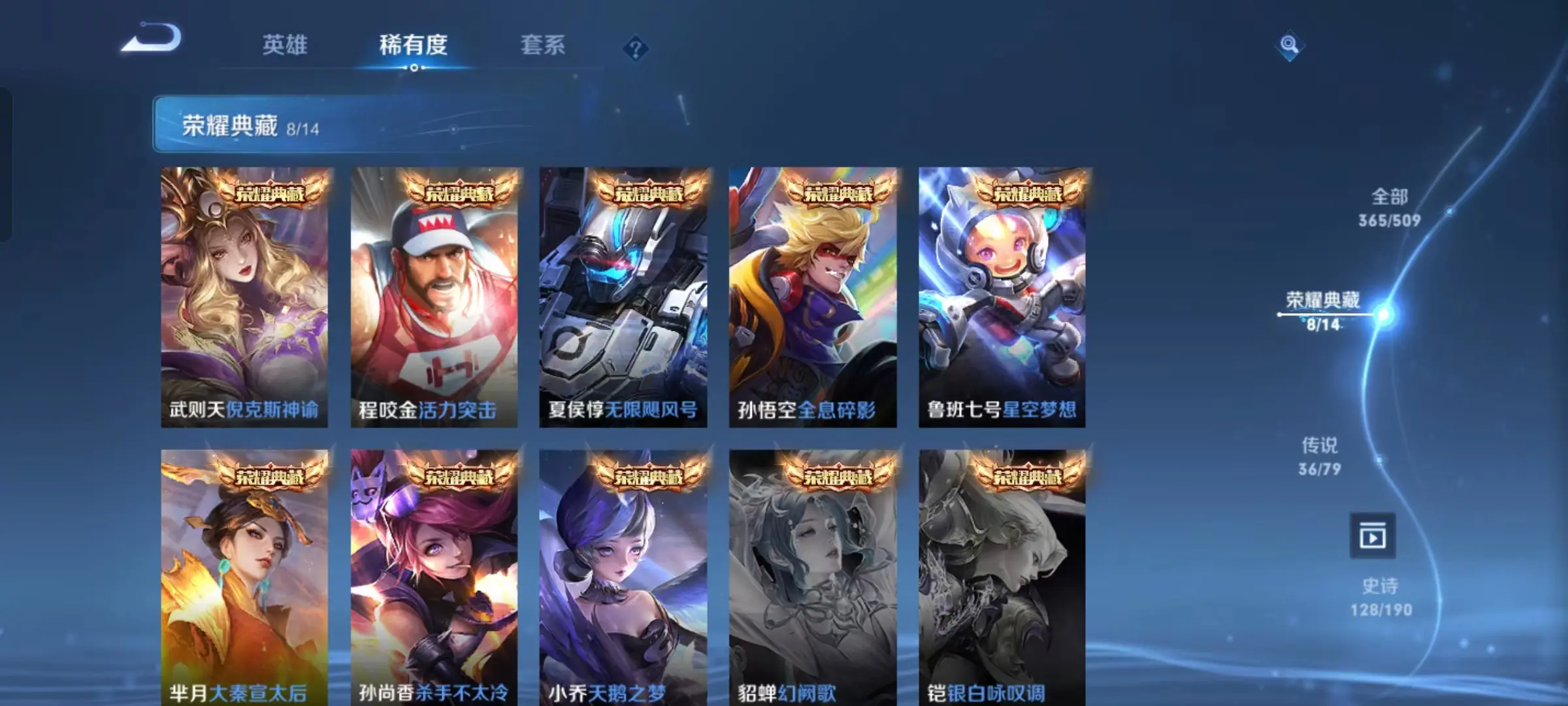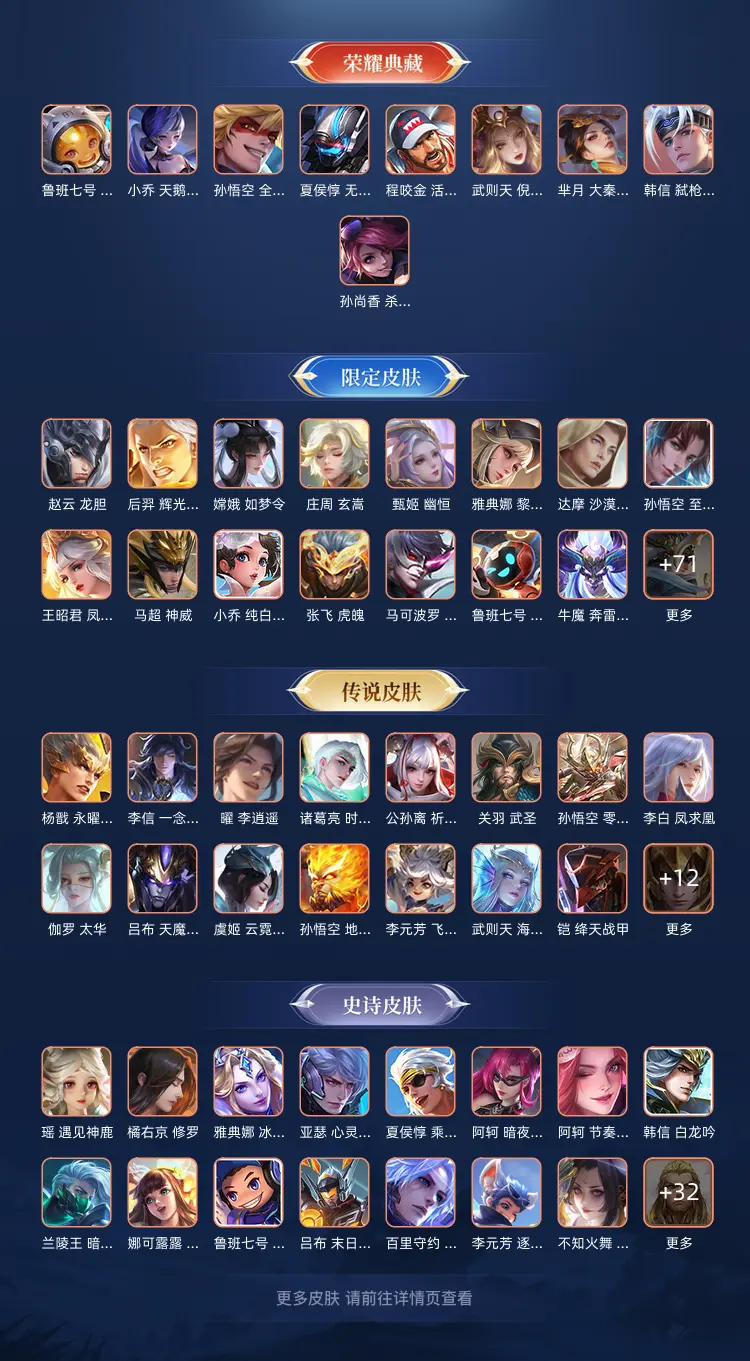 本游戏账号: V10用户,基础段位:至尊星耀V,英雄多,皮肤多。典藏皮肤8个,感受典藏皮肤带来的优质体验快感,FMVP皮肤6个,尽情享受FMVP皮肤带来的主角光环, 私人所属英雄皮肤有:孙尚香 杀手不太冷||鲁班七号 星空梦想||芈月 大秦宣太后||夏侯惇 无限飓风号||武则天 倪克斯神谕||程咬金 活力突击||孙悟空 全息碎影||小乔 天鹅之梦铠 绛天战甲||孙尚香 末日机甲||周瑜 音你心动||狄仁杰 超时空战士||达摩 黄金狮子座||武则天 海洋之心||貂蝉 仲夏夜之梦||张良 黄金白羊座||孙悟空 地狱火||后羿 黄金射手座||李元芳 飞鸢探春||小乔 音你心动,等等