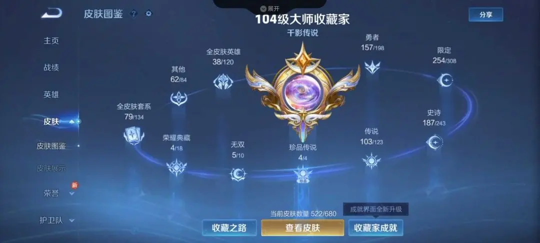 本游戏账号: V10用户,基础段位:最强王者,英雄多,皮肤多。铭文:21及以上,典藏皮肤5个,感受典藏皮肤带来的优质体验快感,FMVP皮肤8个,尽情享受FMVP皮肤带来的主角光环, 私人所属英雄皮肤有:孙悟空 全息碎影||夏侯惇 无限飓风号||李白 鸣剑·曳影||瑶 拾光映像孙悟空 地狱火||狄仁杰 超时空战士||宫本武藏 地狱之眼||孙尚香 末日机甲||诸葛亮 武陵仙君||梦奇 胖达荣荣||达摩 黄金狮子座||李信 一念神魔||孙悟空 零号·赤焰||虞姬 启明星使||铠 绛天战甲||兰陵王 默契交锋||曜 李逍遥||赵云 淬星耀世||裴擒虎 寅虎·赤拳||鲁班七号 寅虎·瑞焰||瑶 时之祈愿||蔡文姬 花朝如约||孙策 末日机甲||大乔 挚爱花嫁||孙策 挚爱之约||露娜 启示之音||马可波罗 深海之息||后羿 无尽星芒||娜可露露 前尘镜||橘右京 枫霜尽||李白 诗剑行||曜 山海·苍雷引||李信 山海·炽霜斩||小乔 山海·琳琅生||夏洛特 浮生妄||马可波罗 妄想实况|