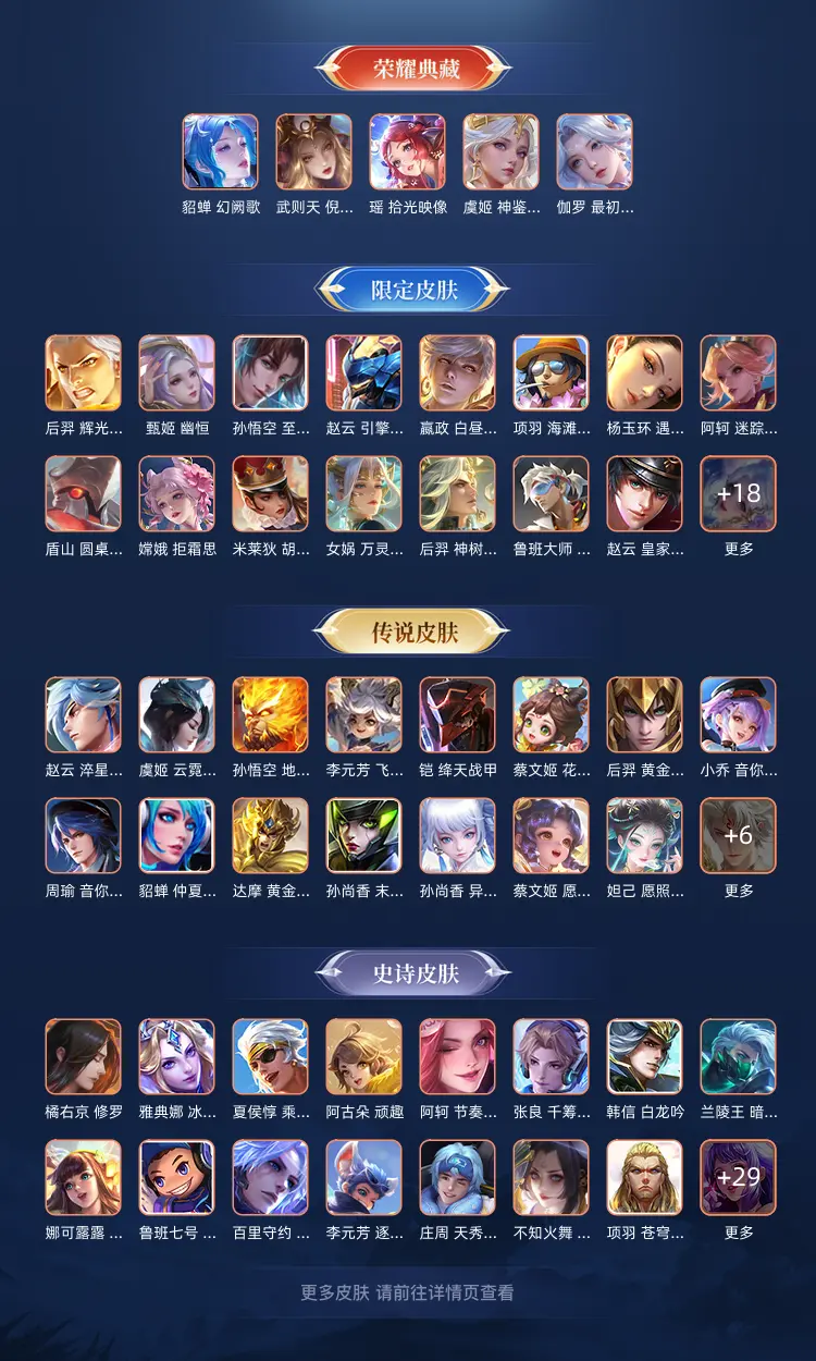 本游戏账号: V10无双贵族用户,基础段位:无双王者,英雄多,皮肤多。典藏皮肤3个,感受典藏皮肤带来的优质体验快感,FMVP皮肤7个,尽情享受FMVP皮肤带来的主角光环, 私人所属英雄皮肤有:伽罗 最初的交响||韩信 弑枪猎影||孙尚香 杀手不太冷诸葛亮 鹤羽星尊||张飞 兔狲·蓬尾||瑶 大耳狗之梦||安琪拉 酷洛米之心||典韦 战鼓燎原||兰陵王 影龙天霄||上官婉儿 妄想奇谈||不知火舞 绯月行||夏洛特 浮生妄||孙策 时之奇旅||云缨 幻光神枪||后羿 千劫归真||嫦娥 器灵·落星盏||司空震 愿照·山河定||蔡文姬 愿照·福禄聚||妲己 愿照·众生和||女娲 愿照·千秋盛||杨玉环 星之鸣奏||澜 愿照·九州拓||虞姬 愿照·岁时盈||嬴政 玄雷天君||鲁班七号 江户川柯南||马可波罗 妄想实况||马可波罗 怪盗基德||王昭君 映山客||大乔 时之奇旅||桑启 鸣野蒿||庄周 牧神诗旅||花木兰 燃星之曲||李信 一念神魔||澜 电玩·雷克斯||孙悟空 零号·赤焰||