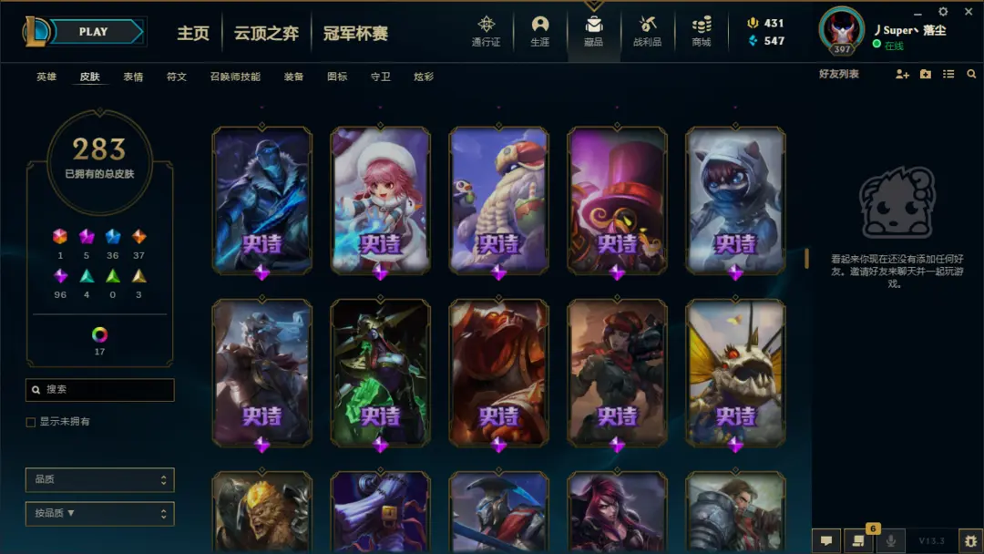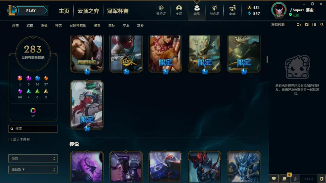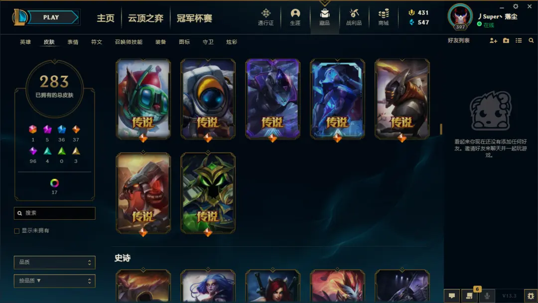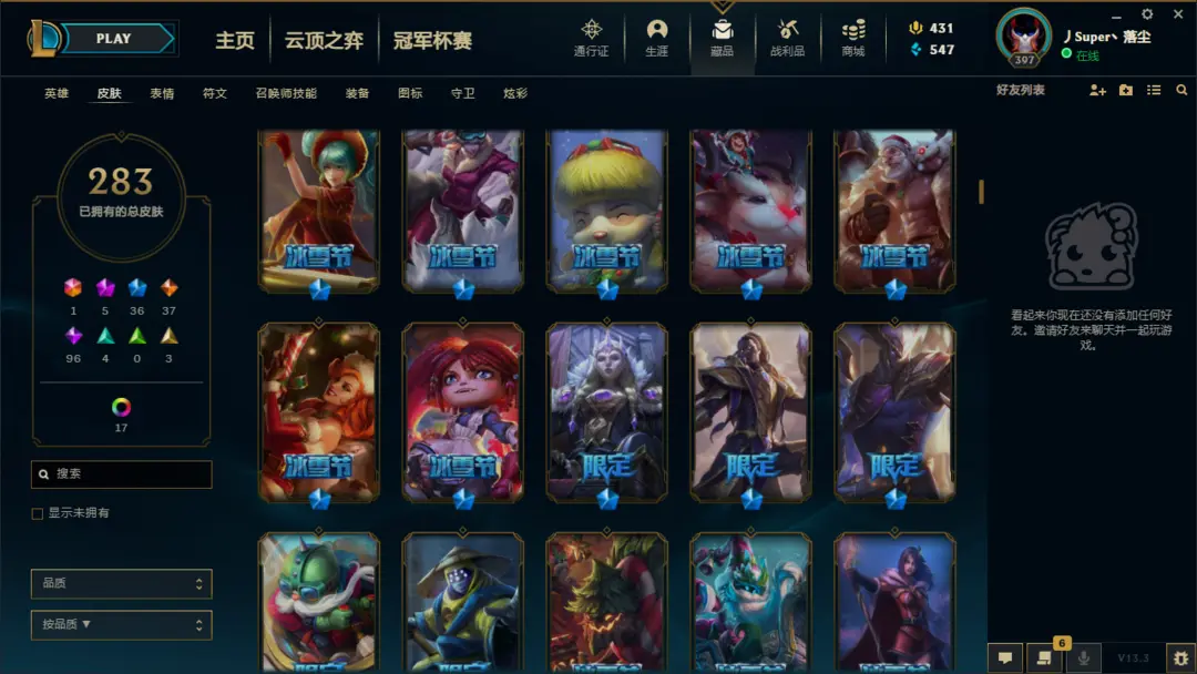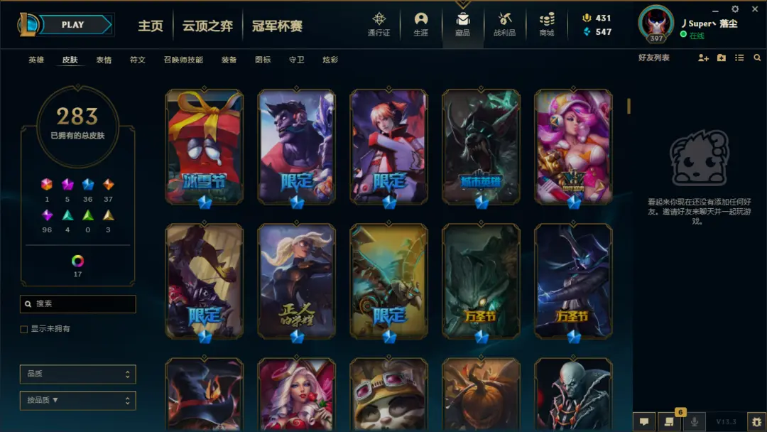 | 英雄: 无 | 皮肤: 298 |