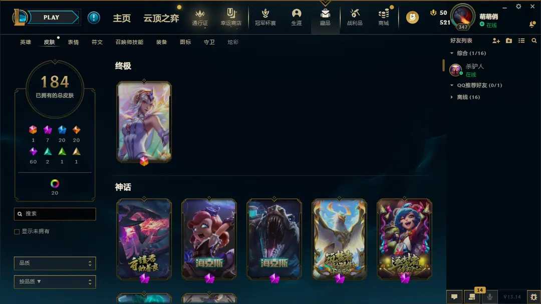| 角色: 萌萌俏#64809 | 等级: 1135级 华贵铂金IV |